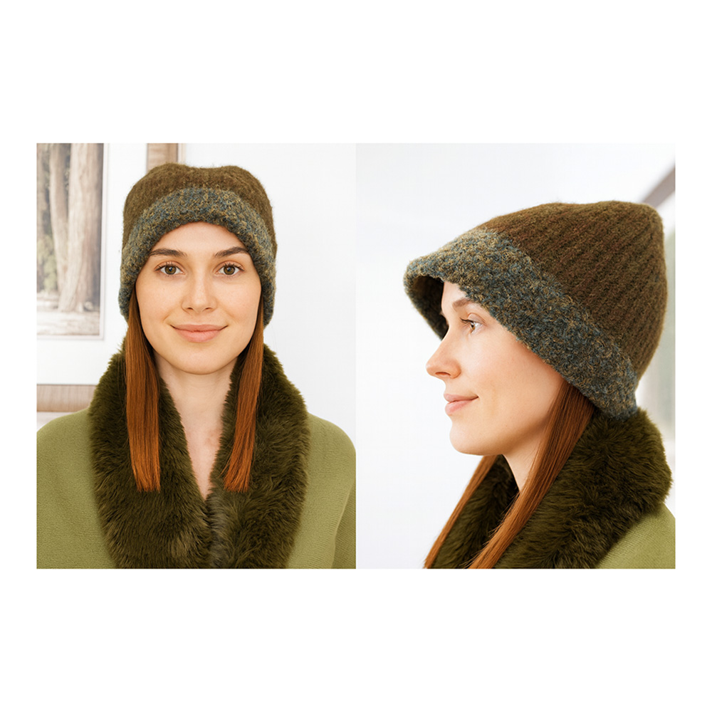 Details • Size : One Size • Material : 8% Wool, 21% Nylon, 70% Polyester, 1% Spandex • Stay warm and chic with this knit bonnet hat featuring a soft ribbed design, cozy lined interior, and adjustable tie closure under the chin. Perfect for cold-weather outings, this stylish winter cap combines vintage charm with modern comfort, making it a versatile accessory for seasonal wear.