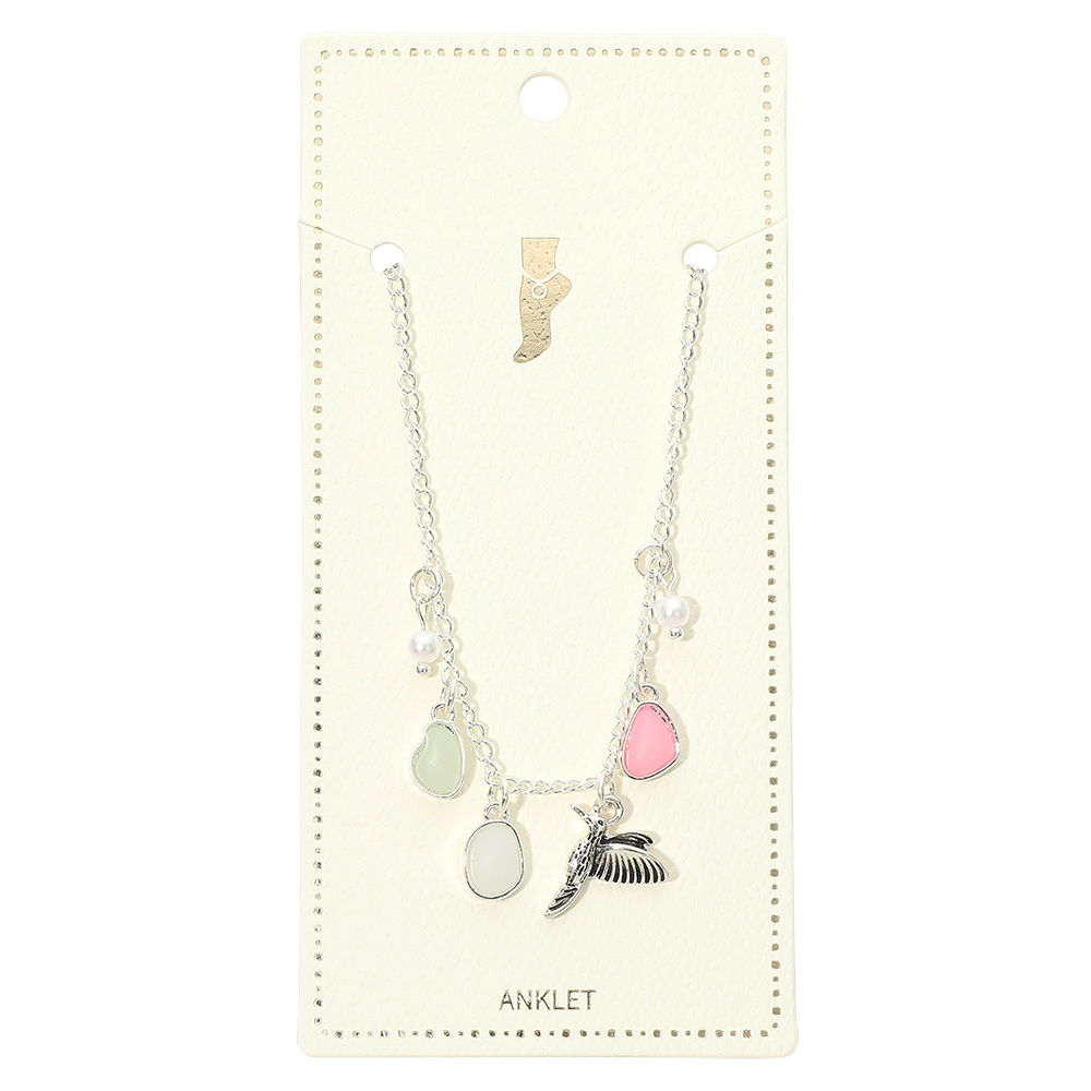 Details • Size : 0.75" H, 9.25" + 1.75" L • Lobster Clasp Closure • Bird charm anklet featuring delicate dangling accents and a graceful nature-inspired silhouette that symbolizes freedom and lightness. Designed to add subtle movement and charm to ankle styling for everyday wear or vacation looks. Ideal for gifting or boutique collections focused on feminine, seasonal fashion jewelry. • Lead and Nickel Compliant
