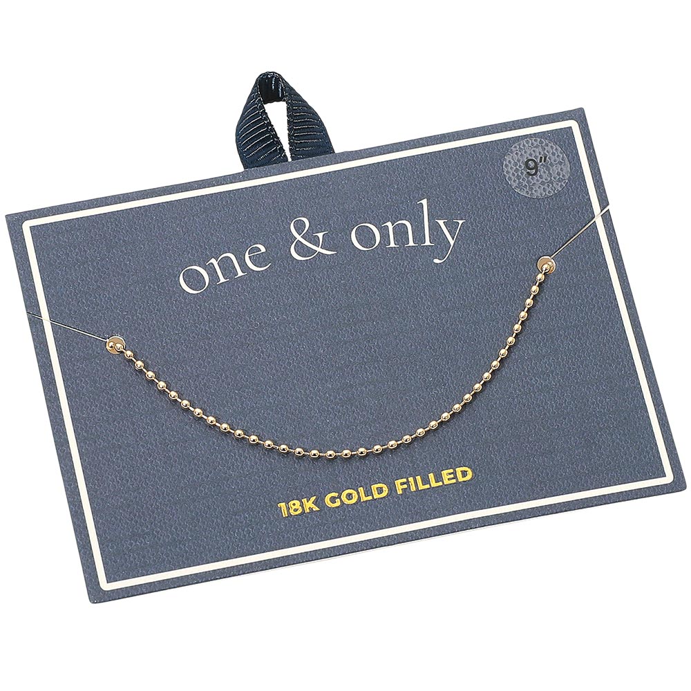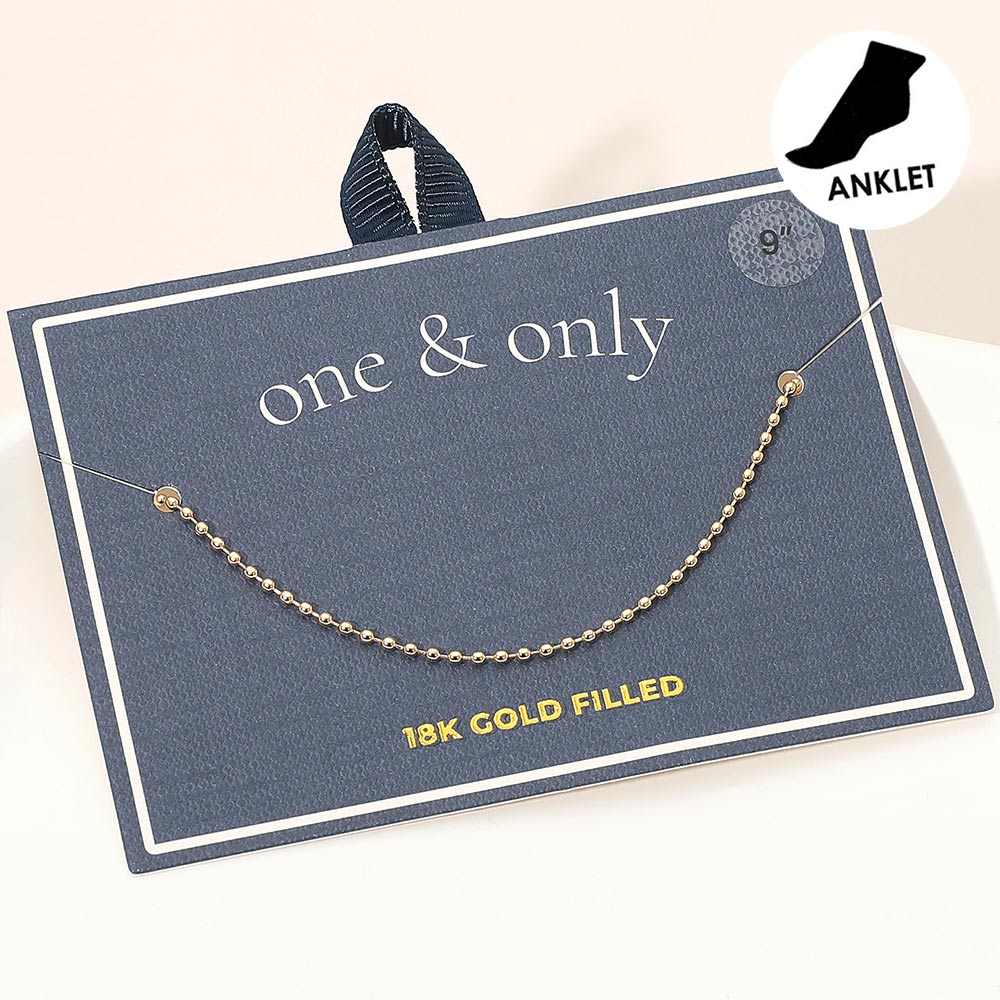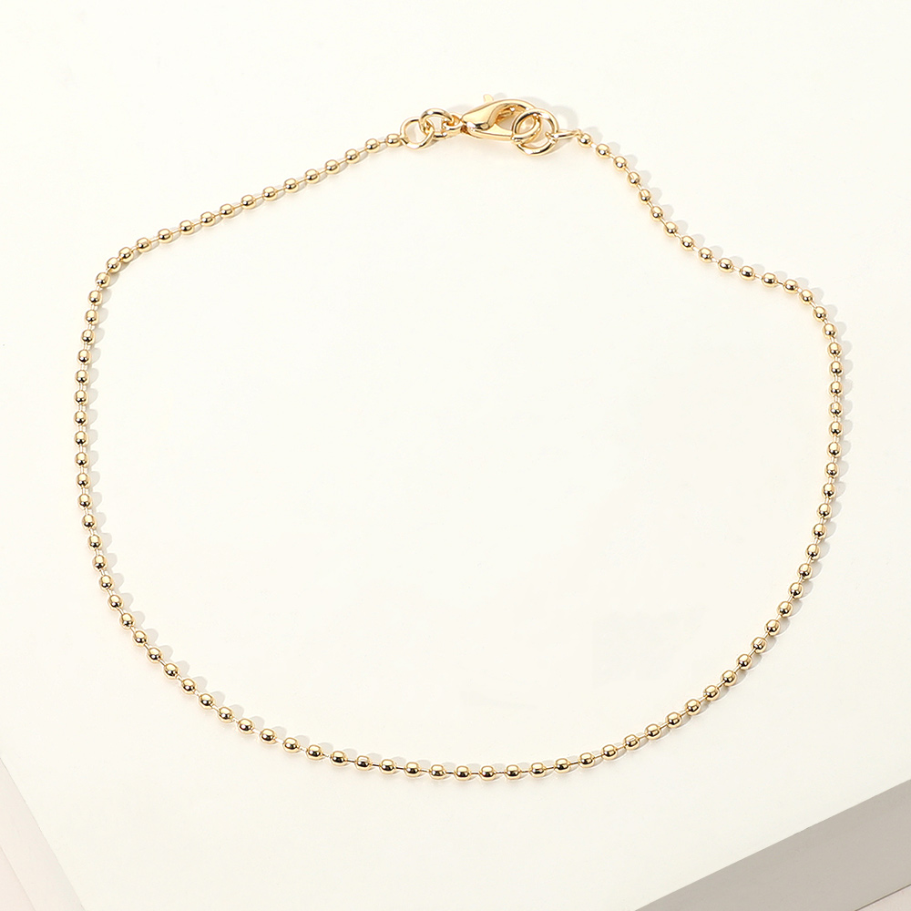 Details • Size : 0.1" H, 9" L • Lobster Clasp Closure • Elegant beaded chain anklet featuring small polished spheres that add subtle shine and texture. A timeless minimalist piece perfect for daily wear or layering, giving any look a refined and graceful accent with understated sophistication. • Gold Filled • Lead and Nickel Compliant • Made In Brazil