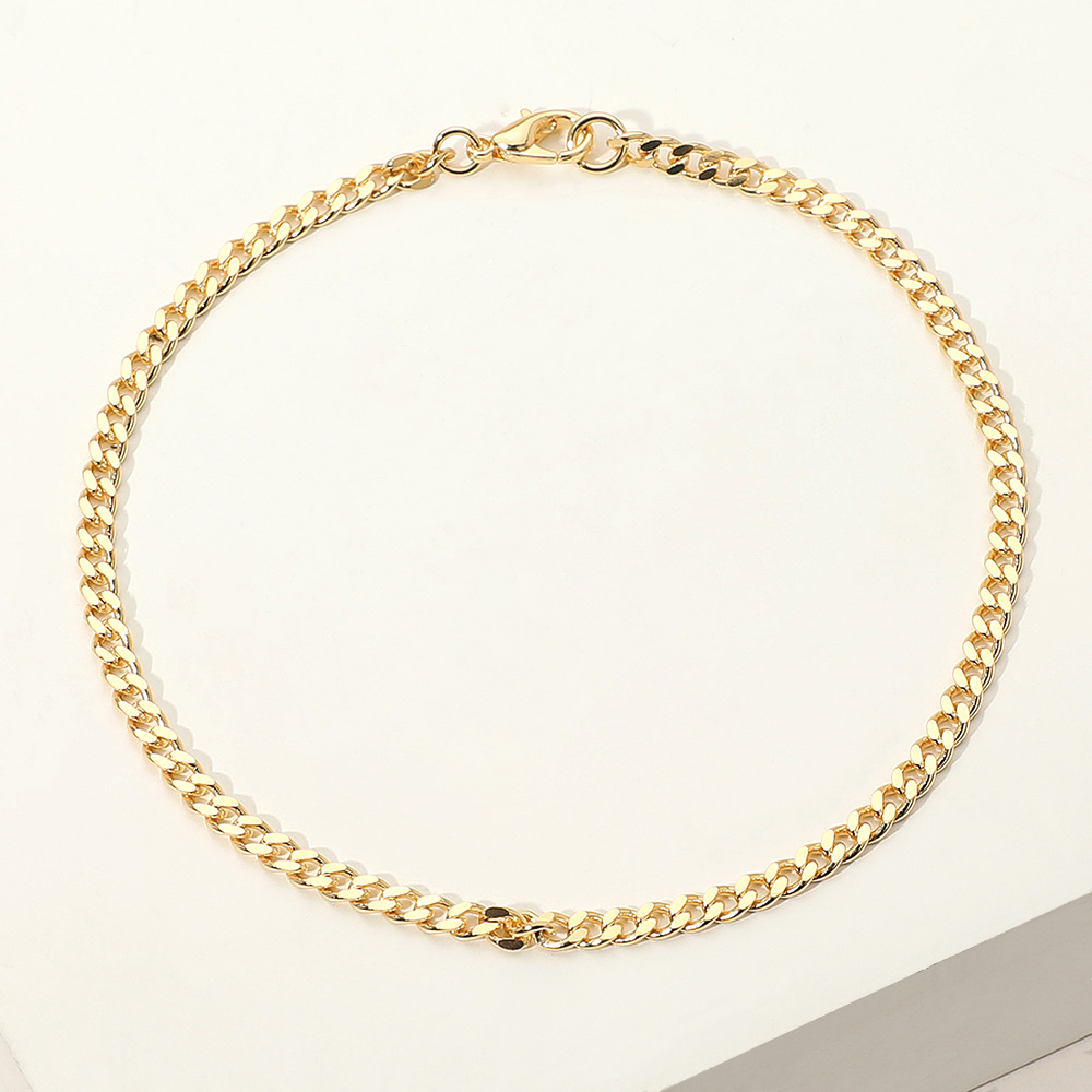 Details • Size : 0.1" H (3mm), 8.5" L • Lobster Clasp • Timeless Cuban chain anklet featuring smooth flat links with a sleek polished shine. Its classic design offers effortless sophistication, perfect for daily wear or layering with other pieces. A versatile accessory that adds a refined touch to any modern or classic look. • Gold Filled • Lead and Nickel Compliant • Made In Brazil