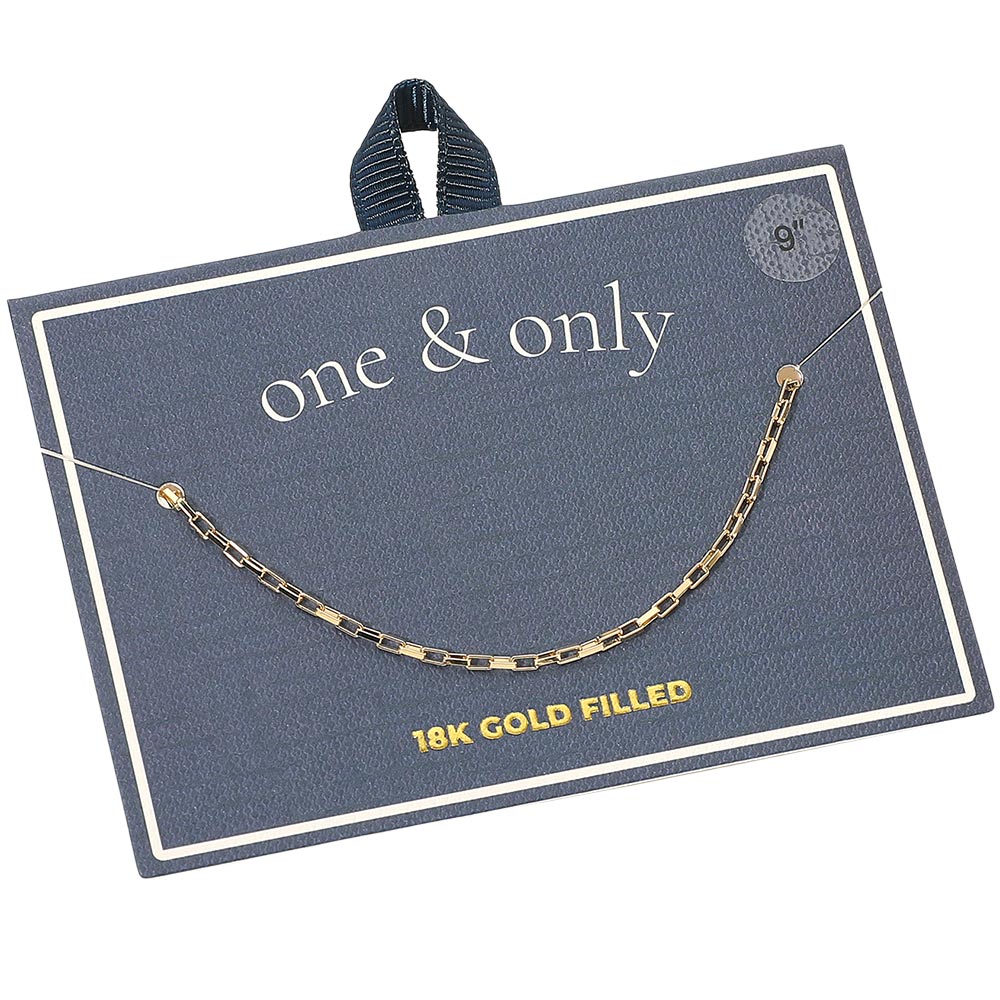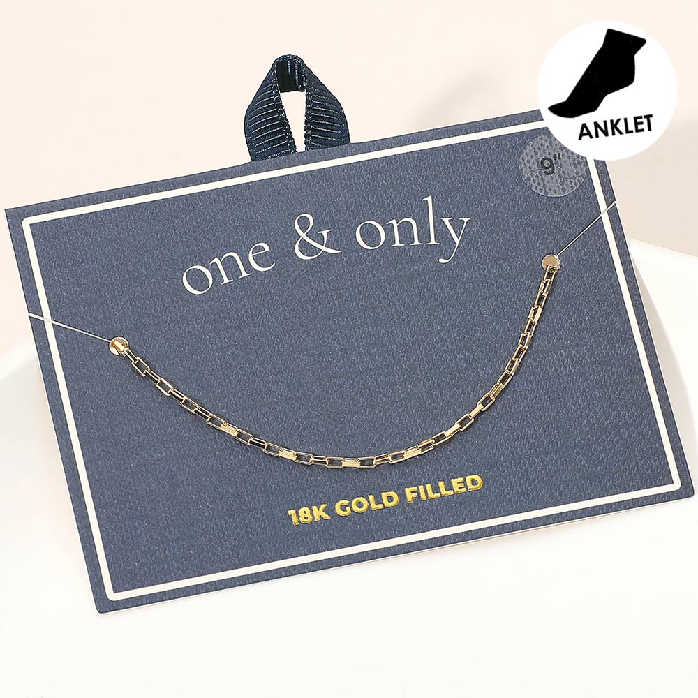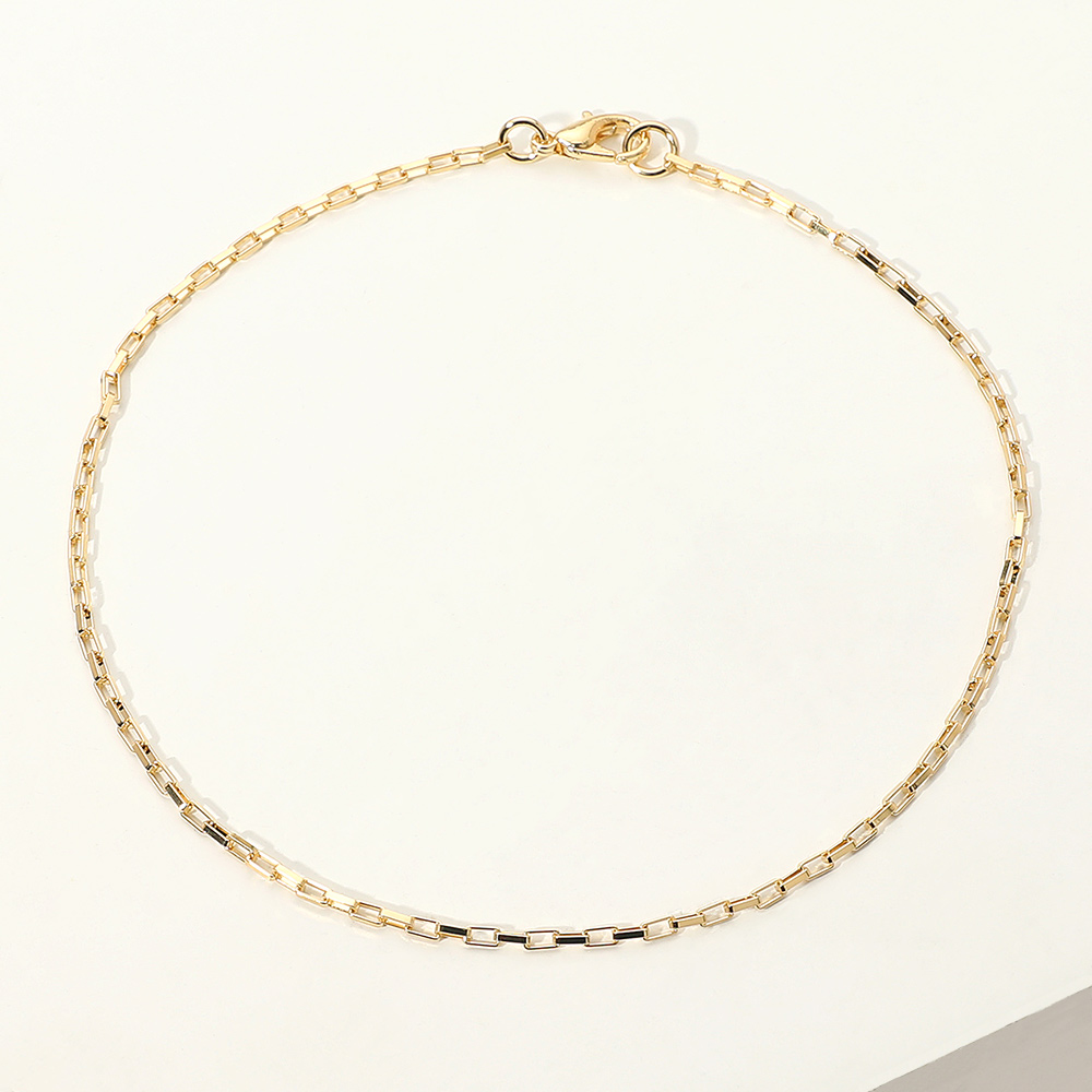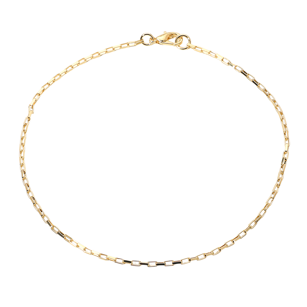 Details • Size : 0.1" H, 9" L • Lobster Clasp Closure • Stylish geometric box link chain anklet with sleek polished detailing for a refined modern touch. Its minimalist design pairs effortlessly with any outfit, making it perfect for layering or wearing solo to add a hint of everyday elegance and shine. • Gold Filled • Lead and Nickel Compliant • Made In Brazil