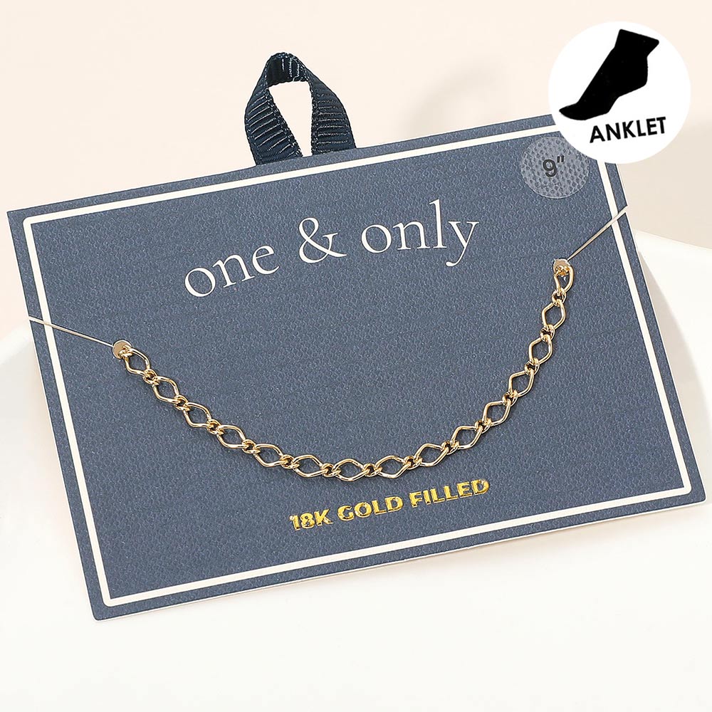 Details • Size : 0.1" H (3mm), 9" L • Lobster Clasp Closure • Stylish anklet featuring twisted oval links that reflect light beautifully for a refined shimmer. This 18K gold-filled piece adds a touch of sophistication and texture, perfect for layering with other jewelry or wearing alone for a minimalist, timeless look. • Gold Filled • Lead and Nickel Compliant • Made In Brazil
