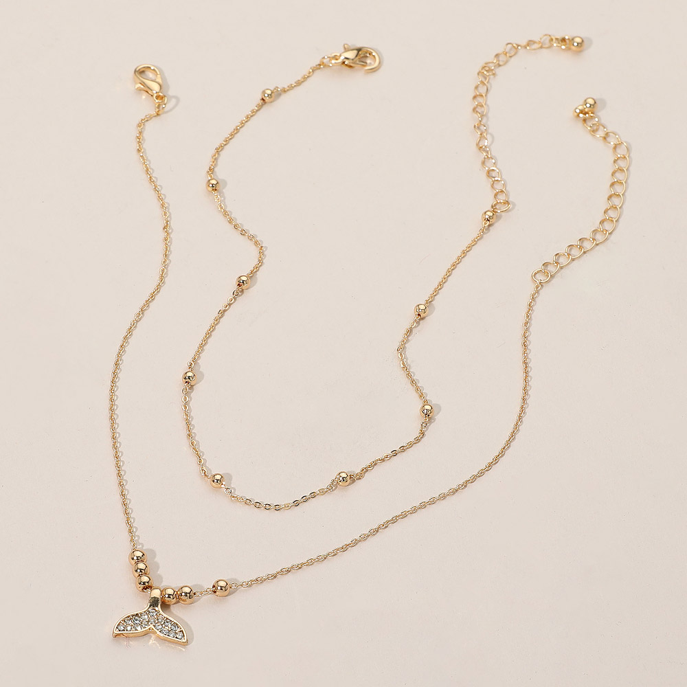 2PCS - Stone Paved Whale Tail Pointed Metal Ball Station Chain Anklets