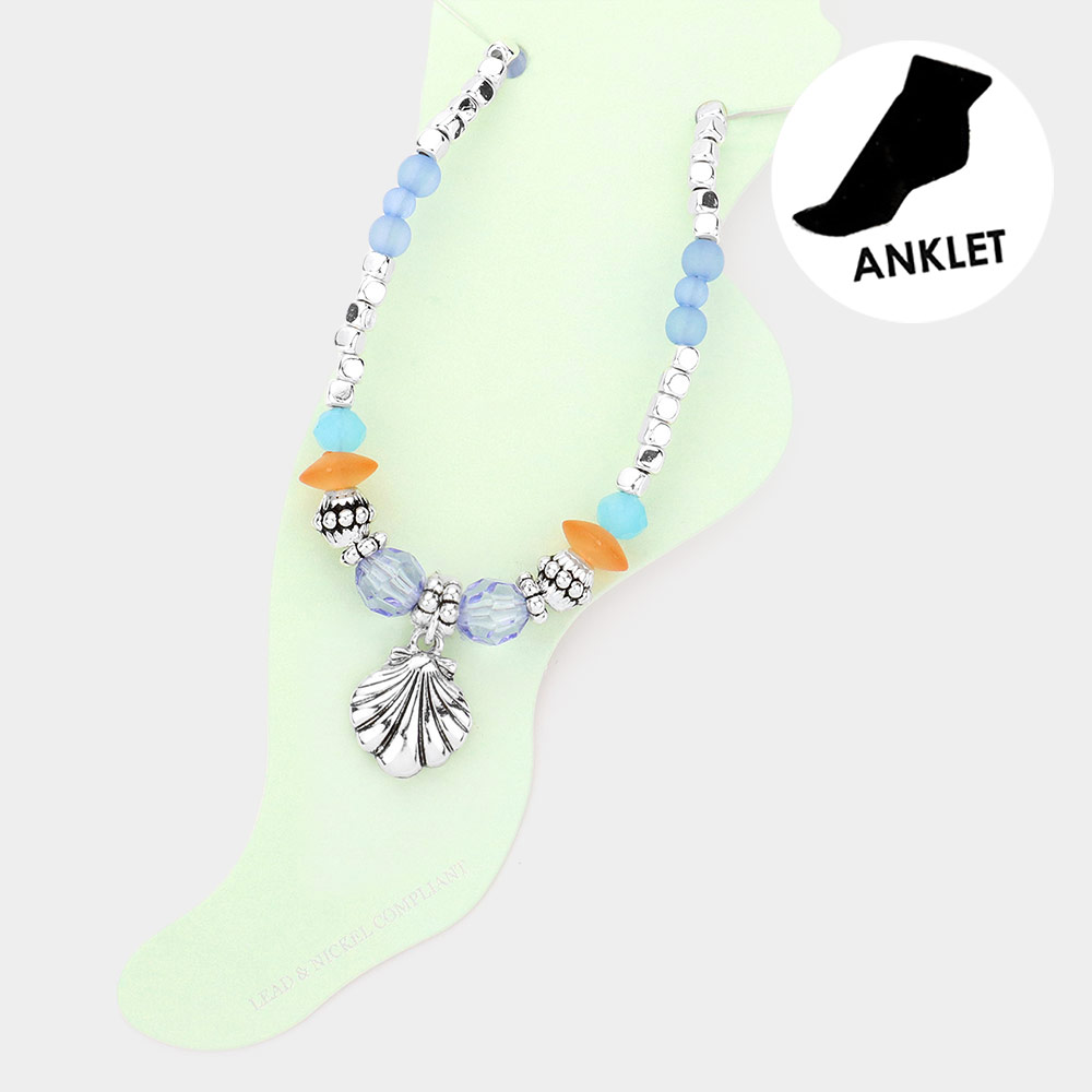 5PCS - Starfish Shell Accent Faceted Beaded Stretch Multi Layered Bracelets