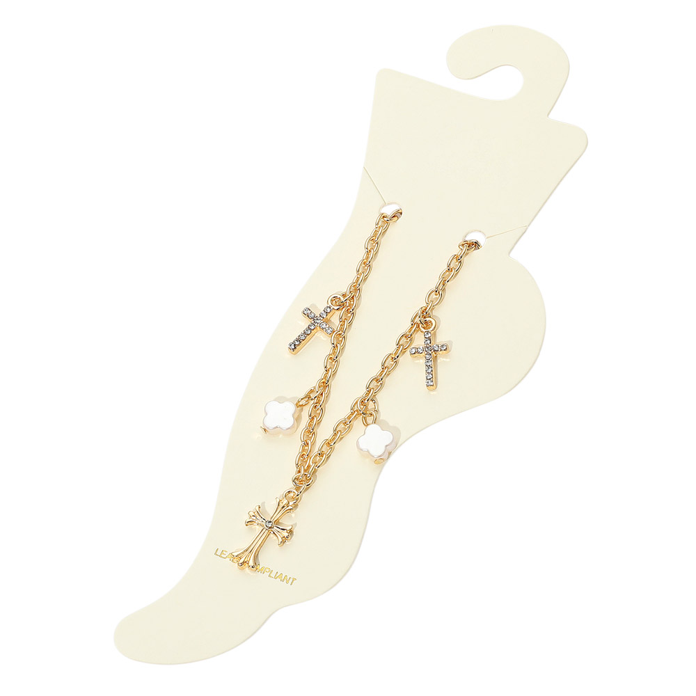 Brushed Metal Heart Cross Pearl Charm Station Chunky Necklace