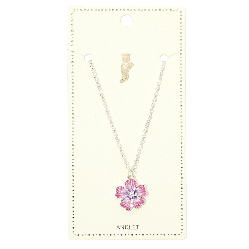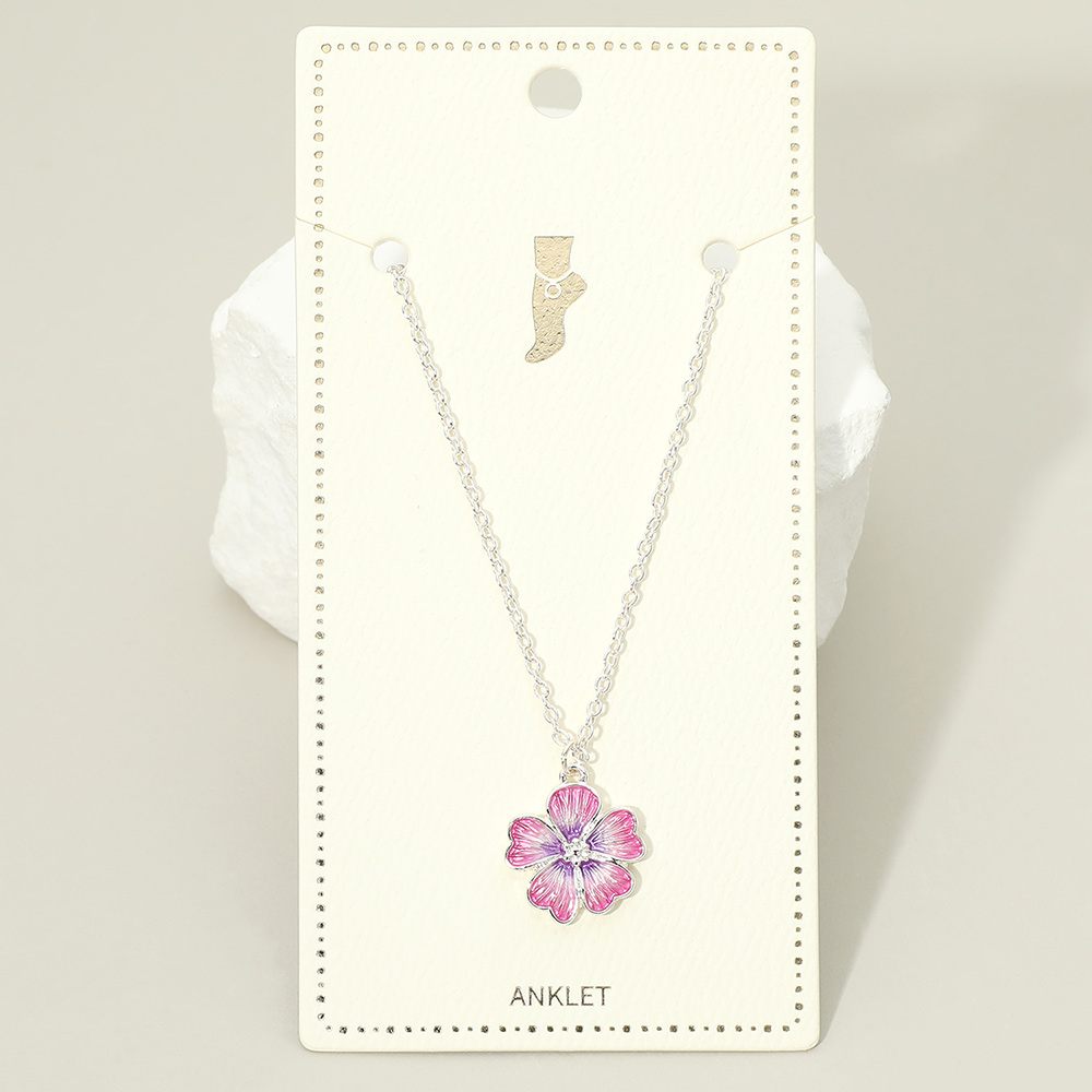• Flower charm anklet featuring a soft nature-inspired floral design that adds feminine charm and gentle movement to ankle styling. Perfect for spring and summer collections, casual outfits, beachwear, and giftable assortments, this anklet appeals to customers seeking elegant, lightweight fashion jewelry with a fresh and timeless botanical feel.