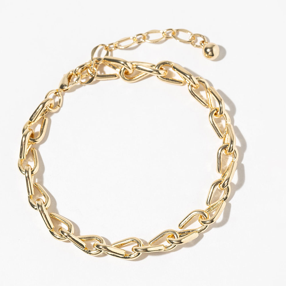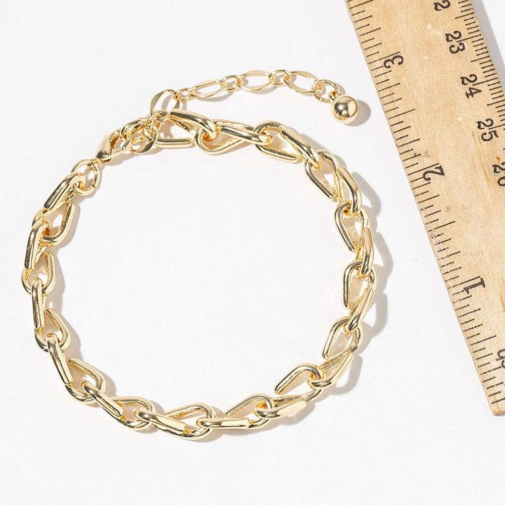 Details • Size : 0.3" H, 8.5" + 2.5" L • Lobster Clasp Closure • Modern twisted link anklet designed for effortless everyday styling. This sleek ankle bracelet features fluid interlocking links that create subtle movement and shine with every step. Perfect for casual wear, vacations, and layering with other ankle jewelry, offering a clean, trend-forward look that complements sandals, sneakers, or heels. • Gold Dipped • Made In Korea