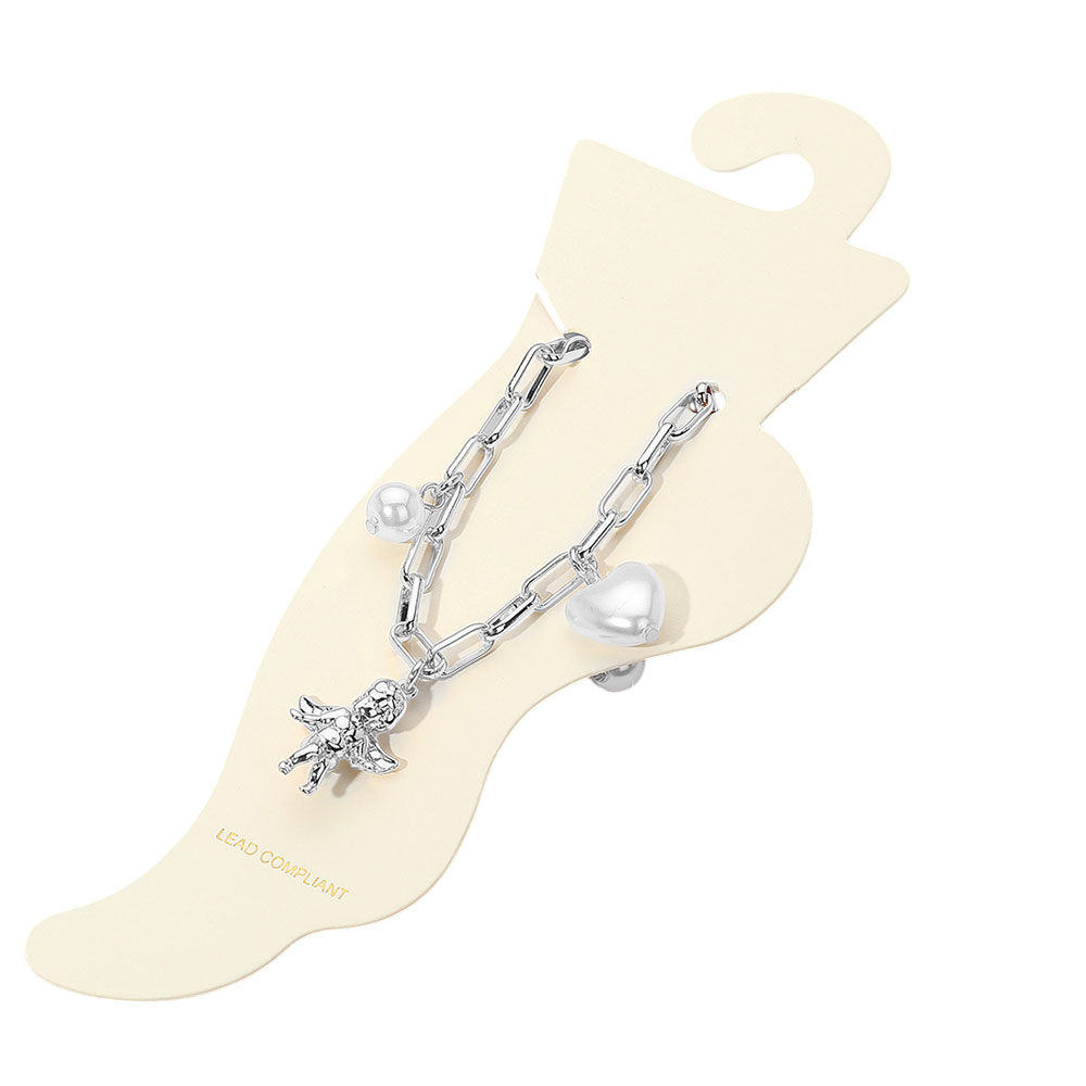 Heart Pearl Metal Bow Angel Balloon Dog Charm Station Paperclip Chain Anklet