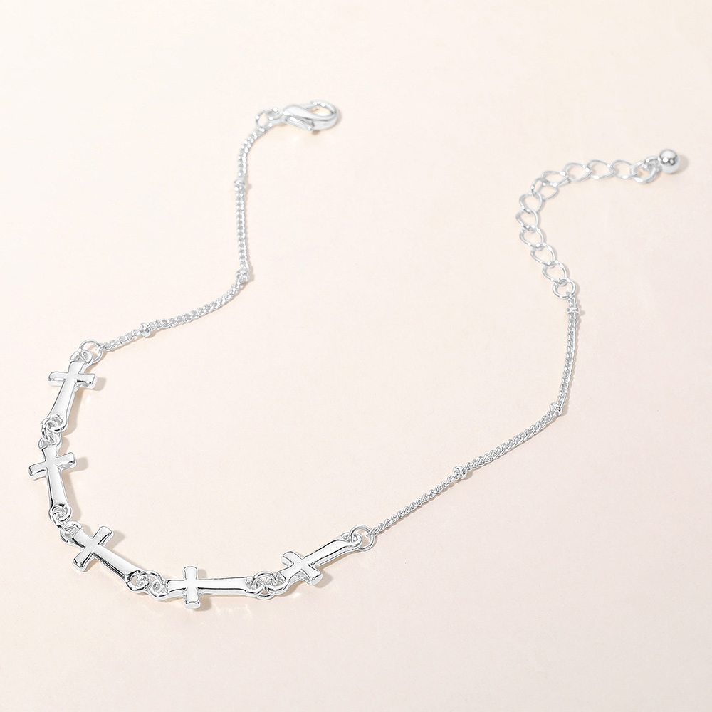 3PCS - Hammered Metal Cross Pendant Beaded Layered Bracelets