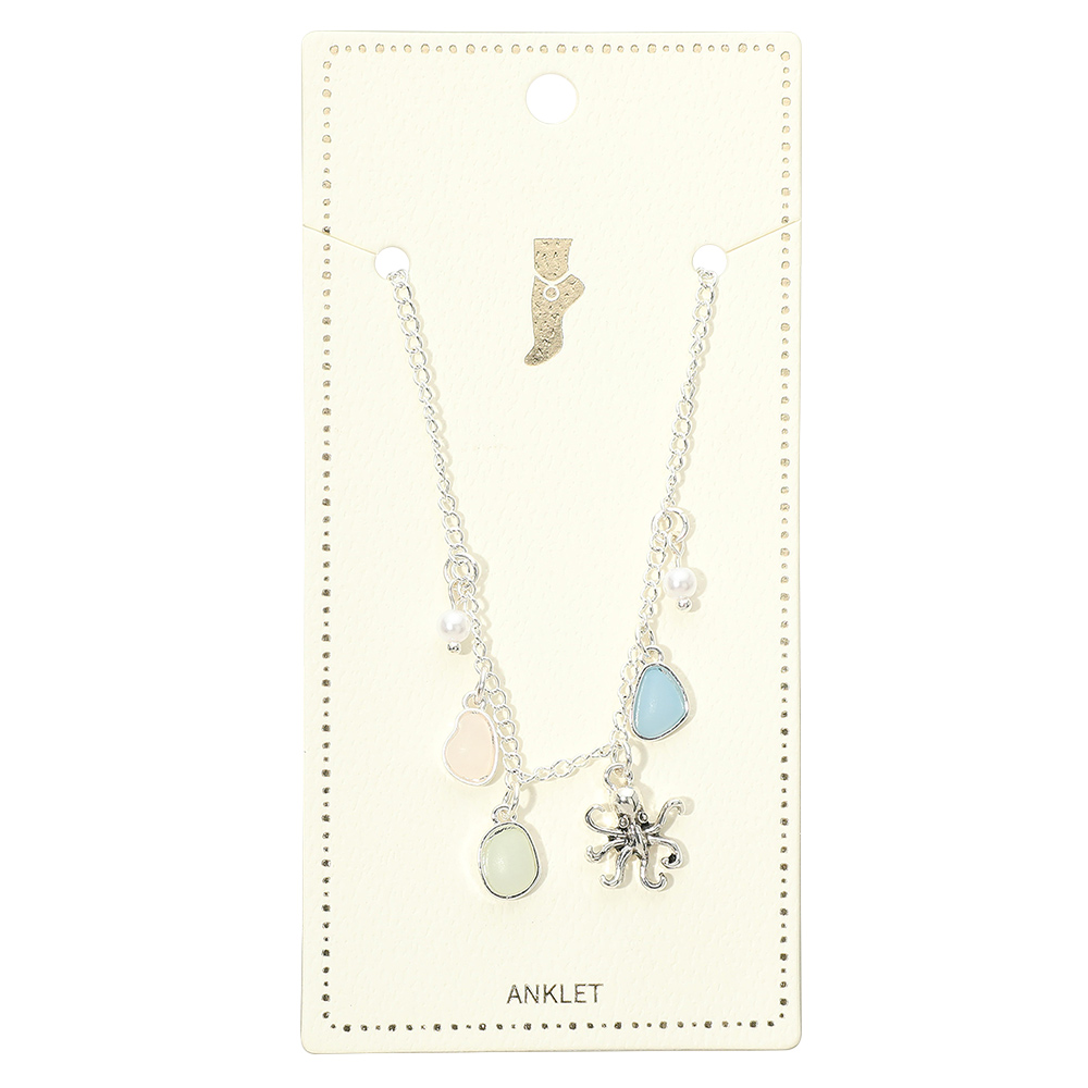 Octopus Sea Glass Pearl Charm Station Anklet Octopus Sea Glass Pearl Charm Station Anklet Octopus Sea Glass Pearl Charm Station Anklet