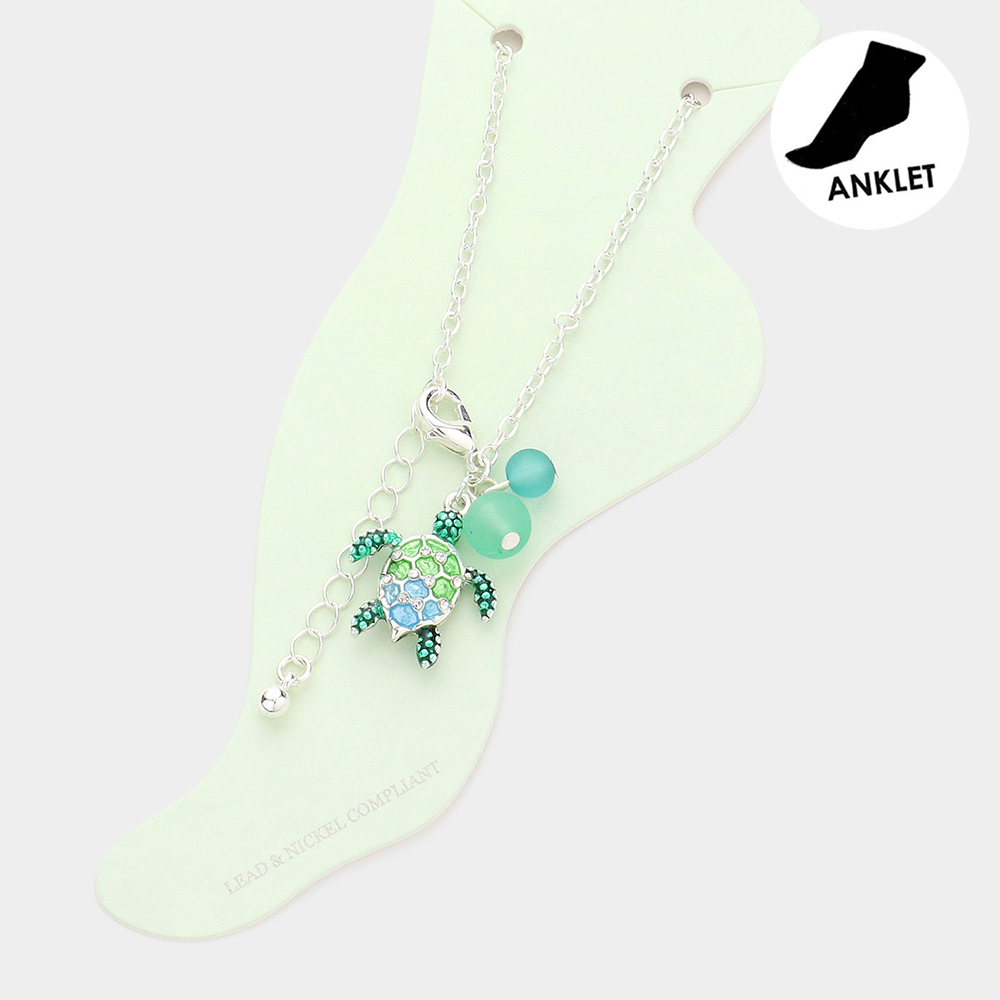 Rhinestone Embellished Enamel Turtle Charm Anklet