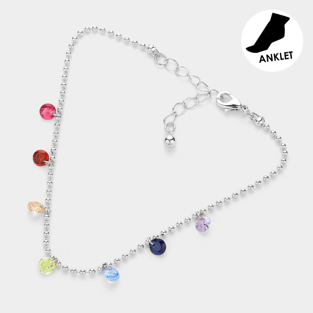Teardrop Accented Rhinestone Net Toe Ring Evening Anklet