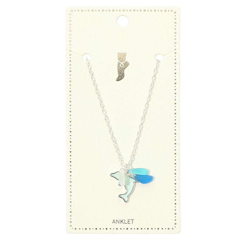 Details • Size : 9" + 1.5" L • Charm Size : 0.6" X 0.75" • Lobster Clasp Closure • Dolphin charm anklet featuring a layered ocean-inspired design that adds playful movement and coastal charm to ankle styling. Lightweight and easy to wear for everyday outfits or vacation looks. Ideal for gifting or boutique collections focused on beach, marine, and summer-themed fashion jewelry. • Lead and Nickel Compliant