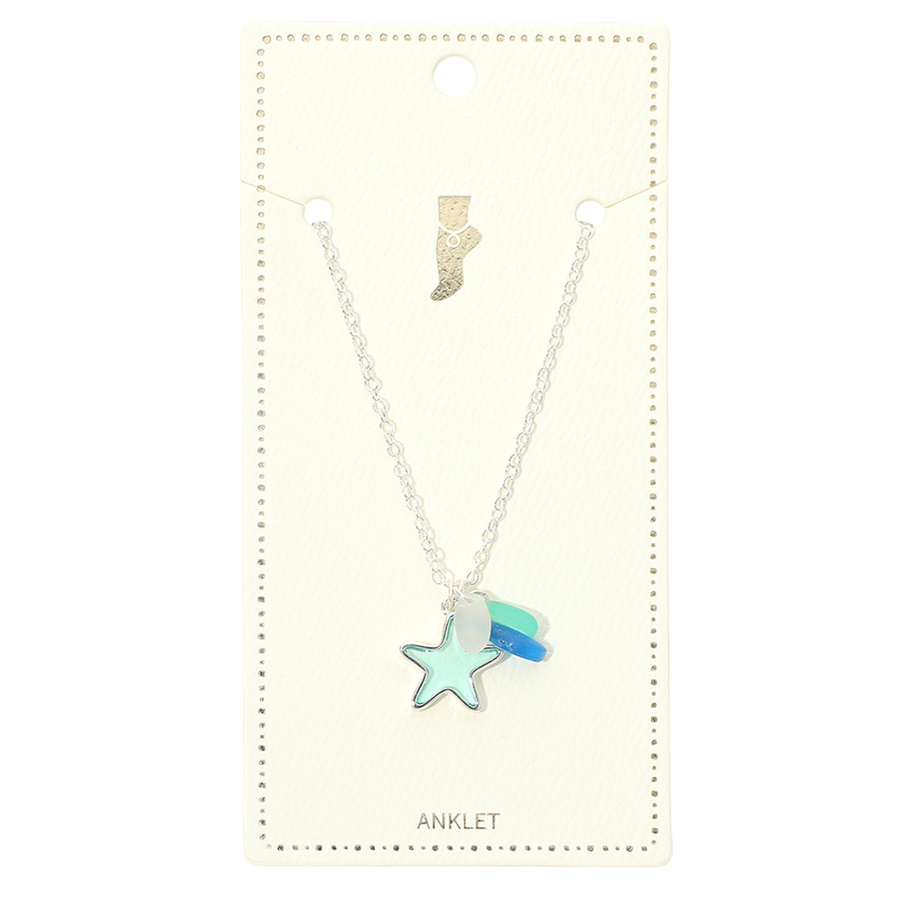 Details • Size : 9" + 1.5" L • Charm Size : 0.6" X 0.7" • Lobster Clasp Closure • Starfish charm anklet featuring a layered, beach-inspired design that adds playful movement and a subtle coastal touch to ankle styling. Lightweight and easy to wear for everyday looks or vacation outfits. Ideal for gifting or boutique collections focused on summer, ocean, and nature-themed fashion jewelry. • Lead and Nickel Compliant
