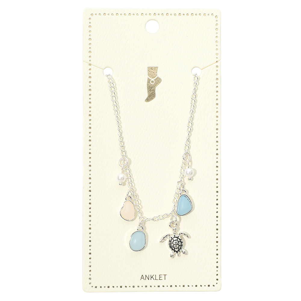 Details • Size : 0.6" H, 9.25" + 1.75" L • Lobster Clasp Closure • Sea turtle charm anklet featuring delicate dangling accents that create a relaxed, ocean-inspired look. Designed to highlight the ankle with subtle movement and charm, perfect for everyday wear or vacation styling. Ideal for gifting or boutique collections focused on coastal and nature-themed fashion jewelry. • Lead and Nickel Compliant