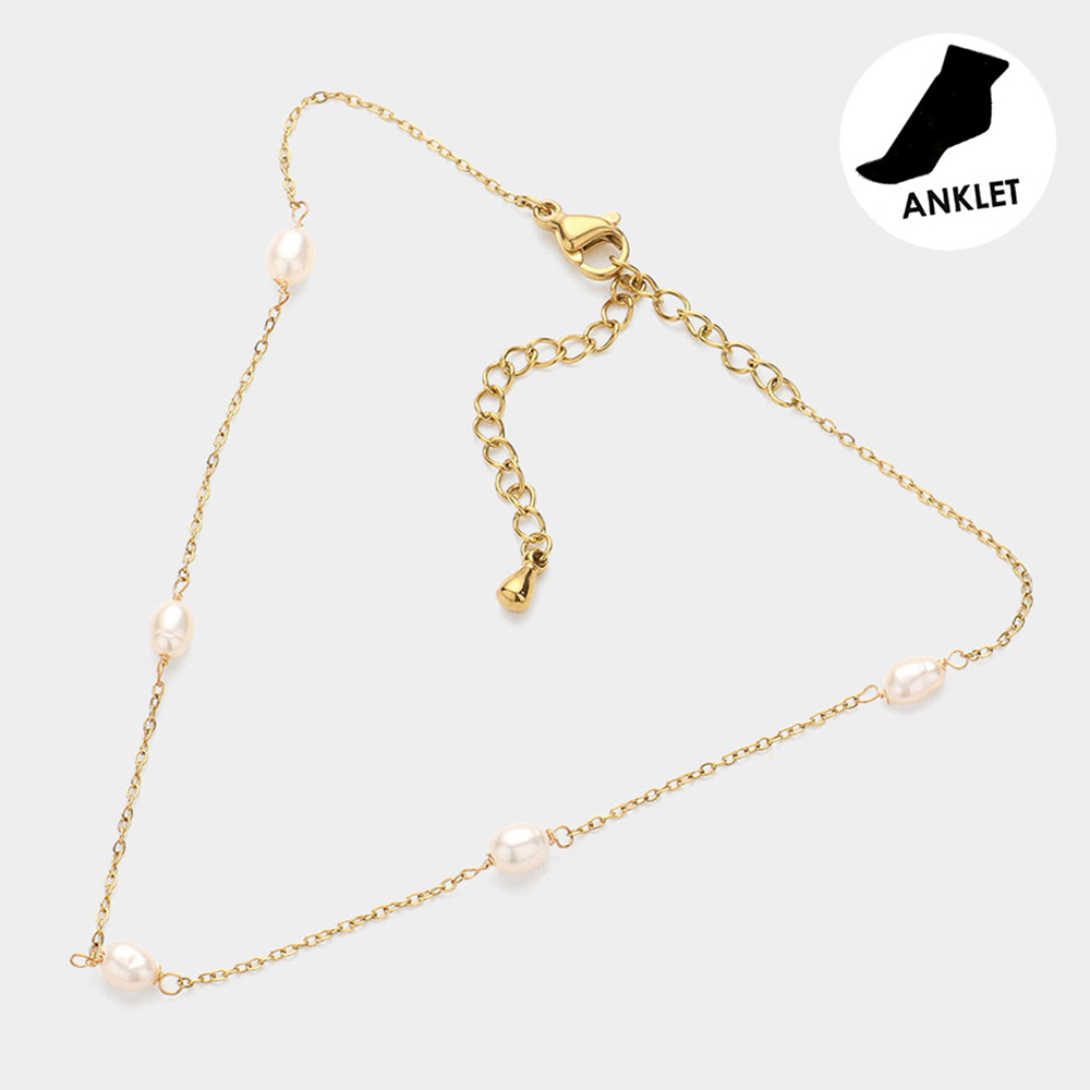 Heart Pearl Metal Bow Angel Balloon Dog Charm Station Paperclip Chain Anklet