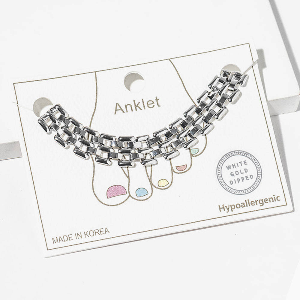 Details • Size : 0.4" H, 8.5" + 2" L • Lobster Clasp Closure • Elegant double layer box chain anklet designed with a sleek, modern touch. Perfect for adding subtle glamour to casual or dressy looks, this stylish ankle bracelet enhances your outfit with refined simplicity and timeless appeal, ideal for everyday wear or special occasions. • Gold Dipped • Hypoallergenic • Lead and Nickel Compliant • Made In Korea