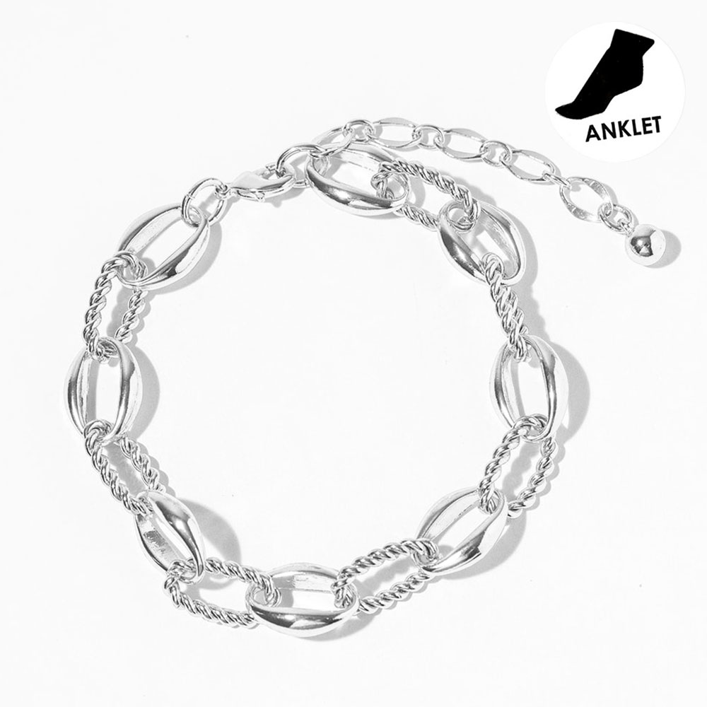 • Stylish mixed-link anklet designed to elevate everyday and vacation looks. Featuring a bold combination of smooth and twisted links, this ankle bracelet adds eye-catching texture and movement. Ideal for layering or wearing solo, it pairs effortlessly with sandals, flats, or heels for a modern, fashion-forward finish.
