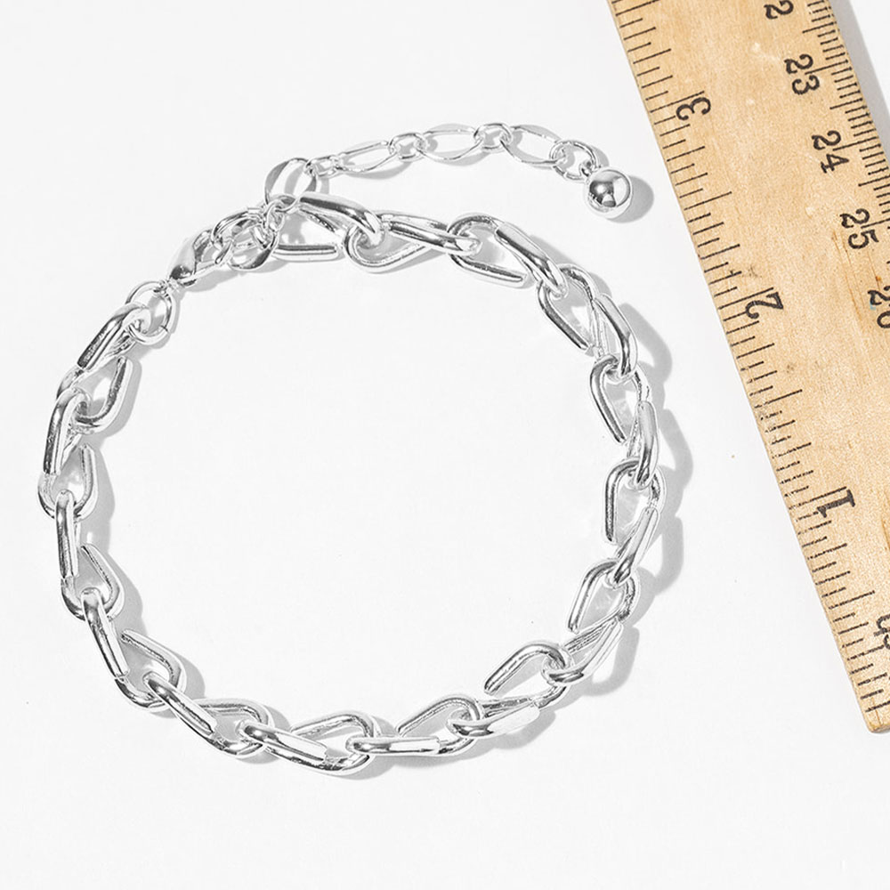 Details • Size : 0.3" H, 8.5" + 2.5" L • Lobster Clasp Closure • Modern twisted link anklet designed for effortless everyday styling. This sleek ankle bracelet features fluid interlocking links that create subtle movement and shine with every step. Perfect for casual wear, vacations, and layering with other ankle jewelry, offering a clean, trend-forward look that complements sandals, sneakers, or heels. • Gold Dipped • Made In Korea