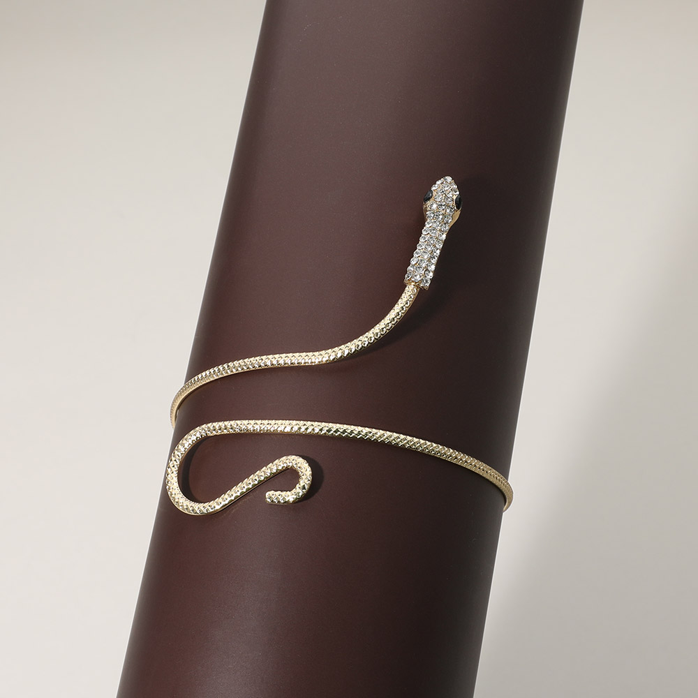 Stone Paved Snake Wire Adjustable Arm Cuff Bracelet