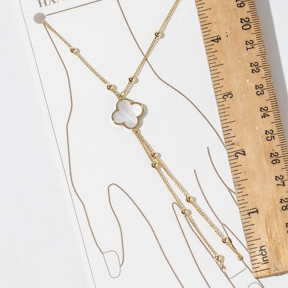 Gold Dipped Delicate Beaded Mother of Pearl Quatrefoil Accent Hand Chain Magnetic Bracelet