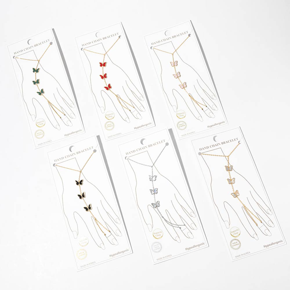 • This butterfly hand chain bracelet features a delicate wrist-to-finger design accented with butterfly charms for a graceful, eye-catching look. Designed with a magnetic clasp for easy wear, it offers elegant movement and statement appeal. Ideal for boutique jewelry collections, layering styles, and everyday or special occasion accessorizing.