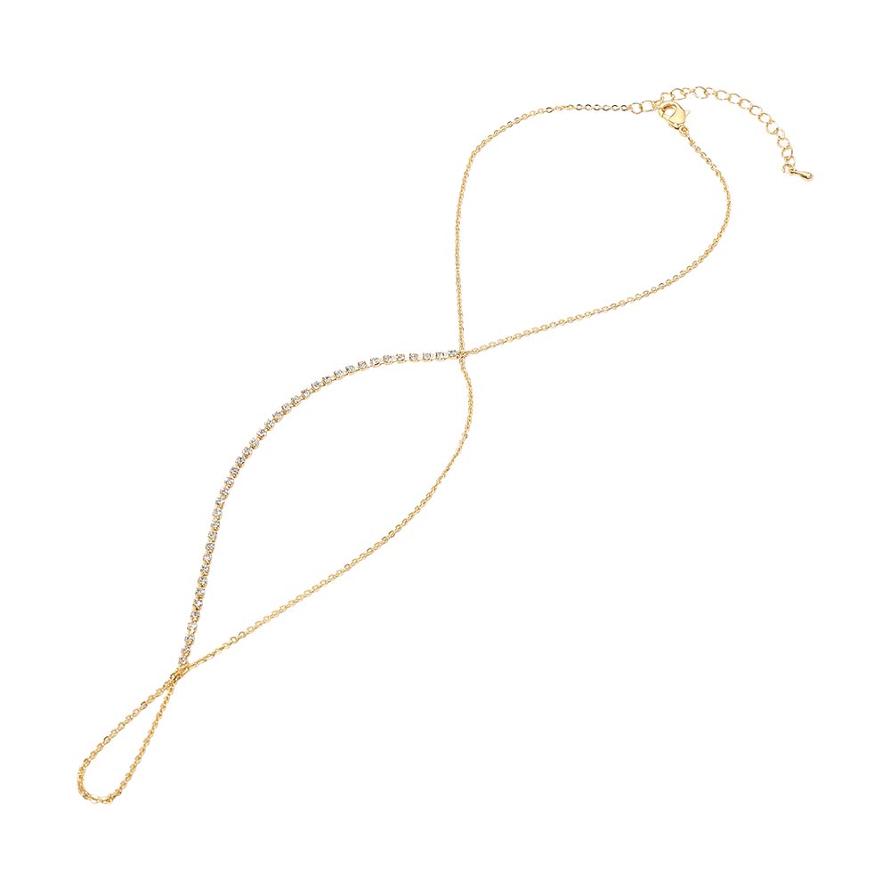 Rhinestone Accent Delicate Hand Chain Bracelet