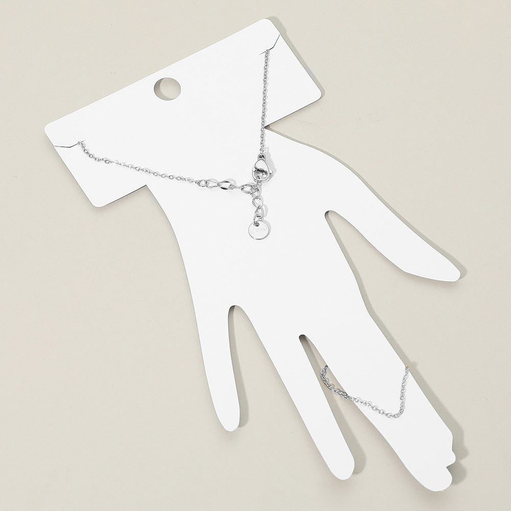 SECRET BOX_Stainless Steel Delicate Stone Charm Link Hand Chain Bracelet