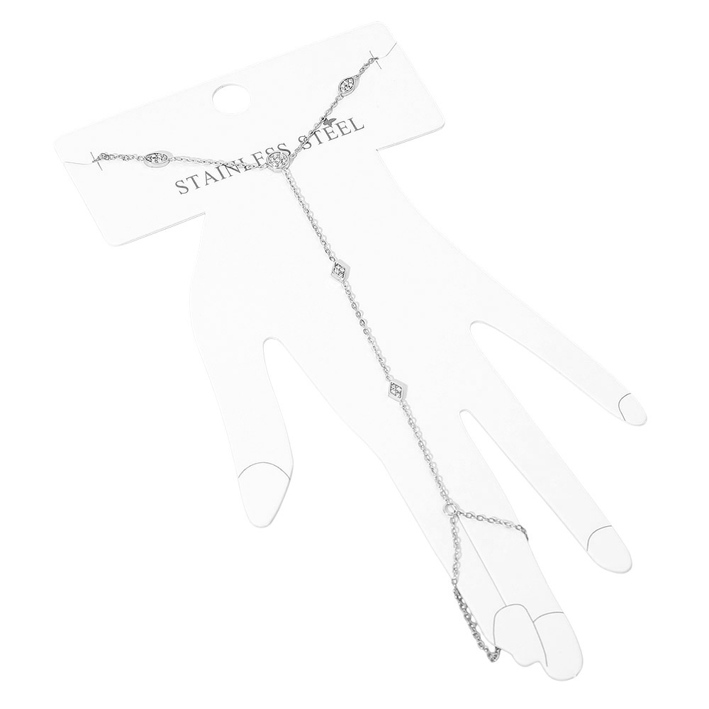 • Stylish hand chain bracelet featuring a delicate linked design that drapes gracefully from wrist to finger. Lightweight and refined, it adds a touch of elegance to everyday looks or special occasions. A chic accessory that highlights your personal style with subtle sparkle.