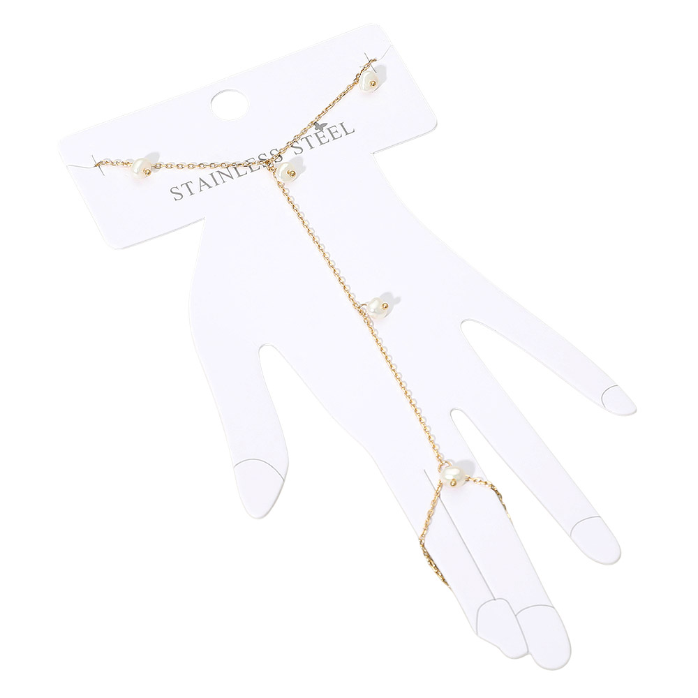 SECRET BOX_Stainless Steel Pearl Charm Hand Chain Bracelet