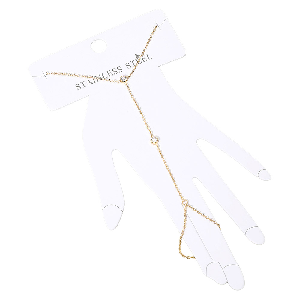• Stylish hand chain bracelet featuring a minimalist linked design that drapes elegantly from finger to wrist. A refined accessory that adds a subtle touch of sparkle, perfect for everyday wear or special occasions. Lightweight, comfortable, and beautifully detailed for a chic look.