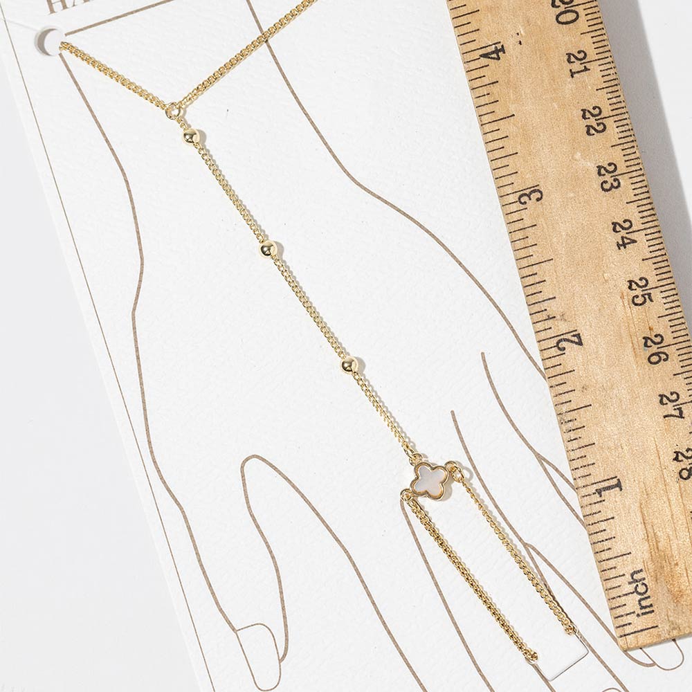 Gold Dipped Delicate Beaded Quatrefoil Accent Hand Chain Magnetic Bracelet