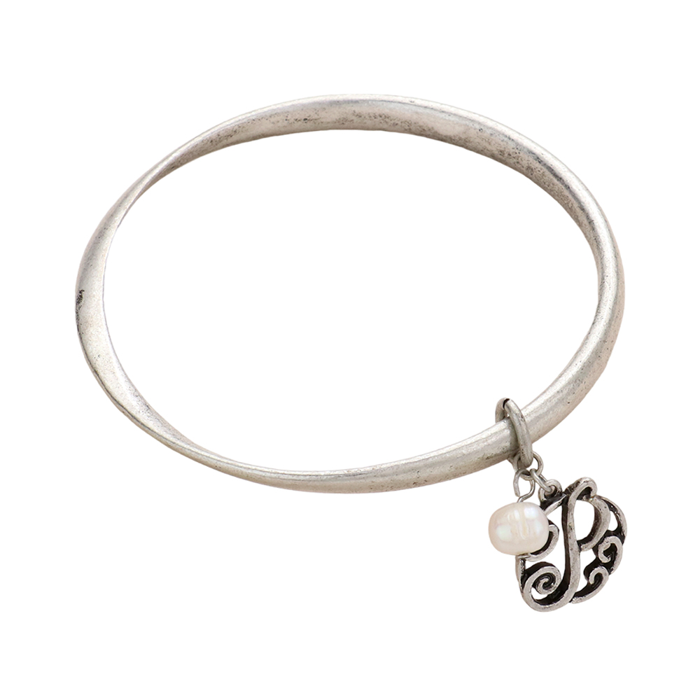 -P- Initial Monogram Pearl Charm Bangle Bracelet