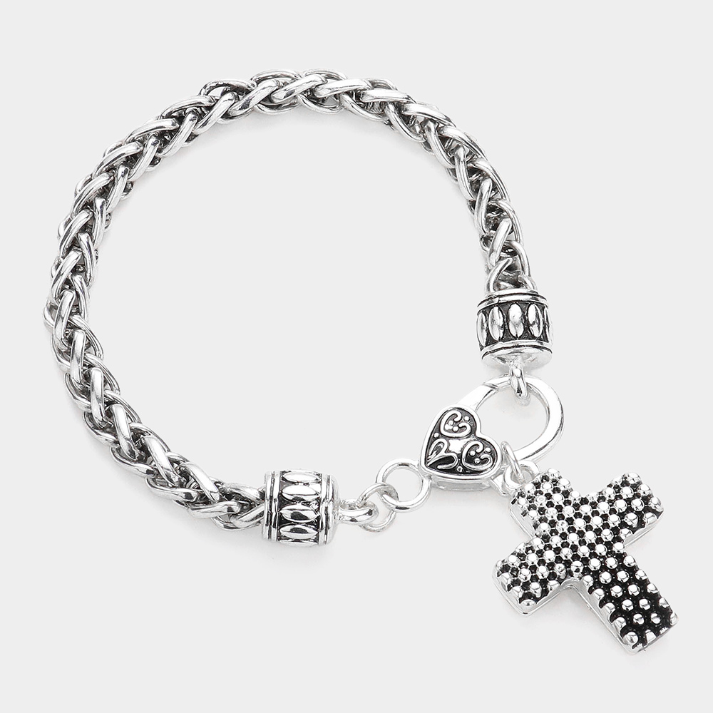 Stone Embellished Antique Metal Cross Dangle Earrings