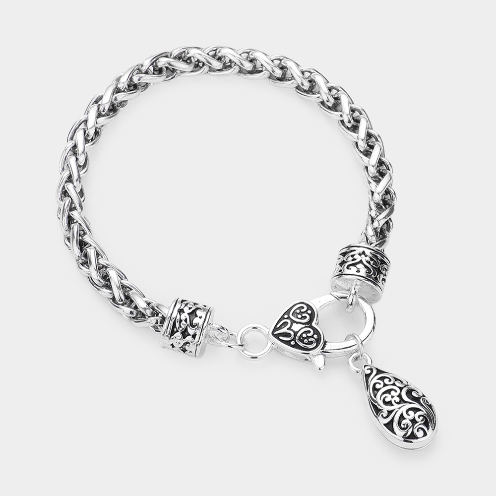 Antique Metal Tree of Life Stone Bezel Charm Station Toggle Bracelet