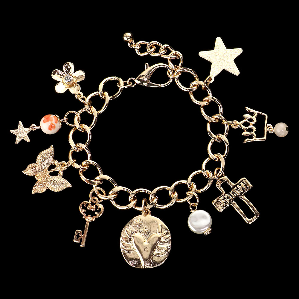 Butterfly Cross Key Flower Star Charm Embellished Chain Bracelet