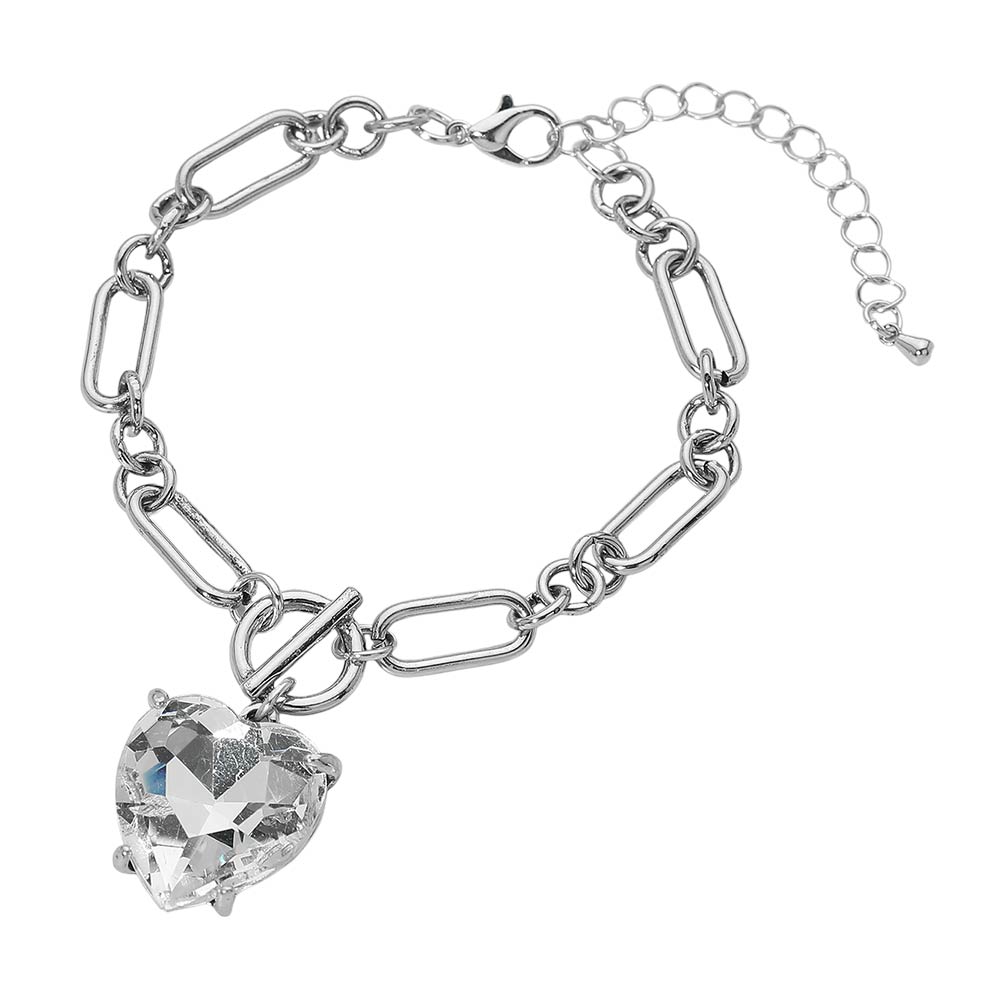 • This paperclip chain bracelet features a bold heart charm accent that creates a striking focal point on a modern, structured silhouette. Designed with an adjustable length for a comfortable fit, it layers easily or stands out worn alone. A stylish statement piece ideal for everyday wear, gifting, or adding a romantic touch to casual and dress-ready looks.