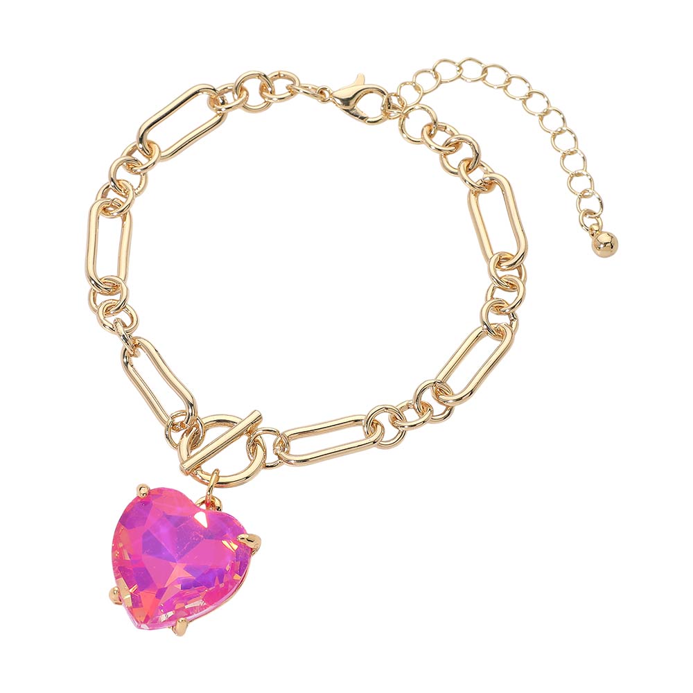 Chunky Heart Stone Cluster Toggle Charm Bracelet