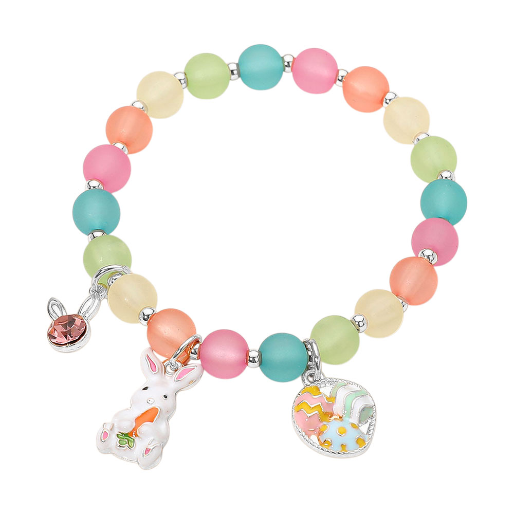 Easter Bunny Egg Basket Charm Beaded Stretch Bracelet Easter Bunny Egg Basket Charm Beaded Stretch Bracelet
