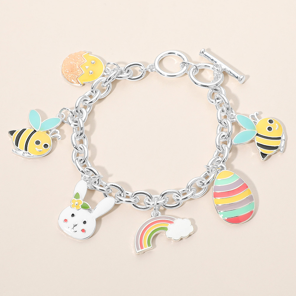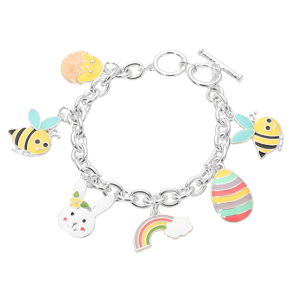 Enamel Honey Bee Rainbow Bunny Easter Egg Charm Toggle Bracelet