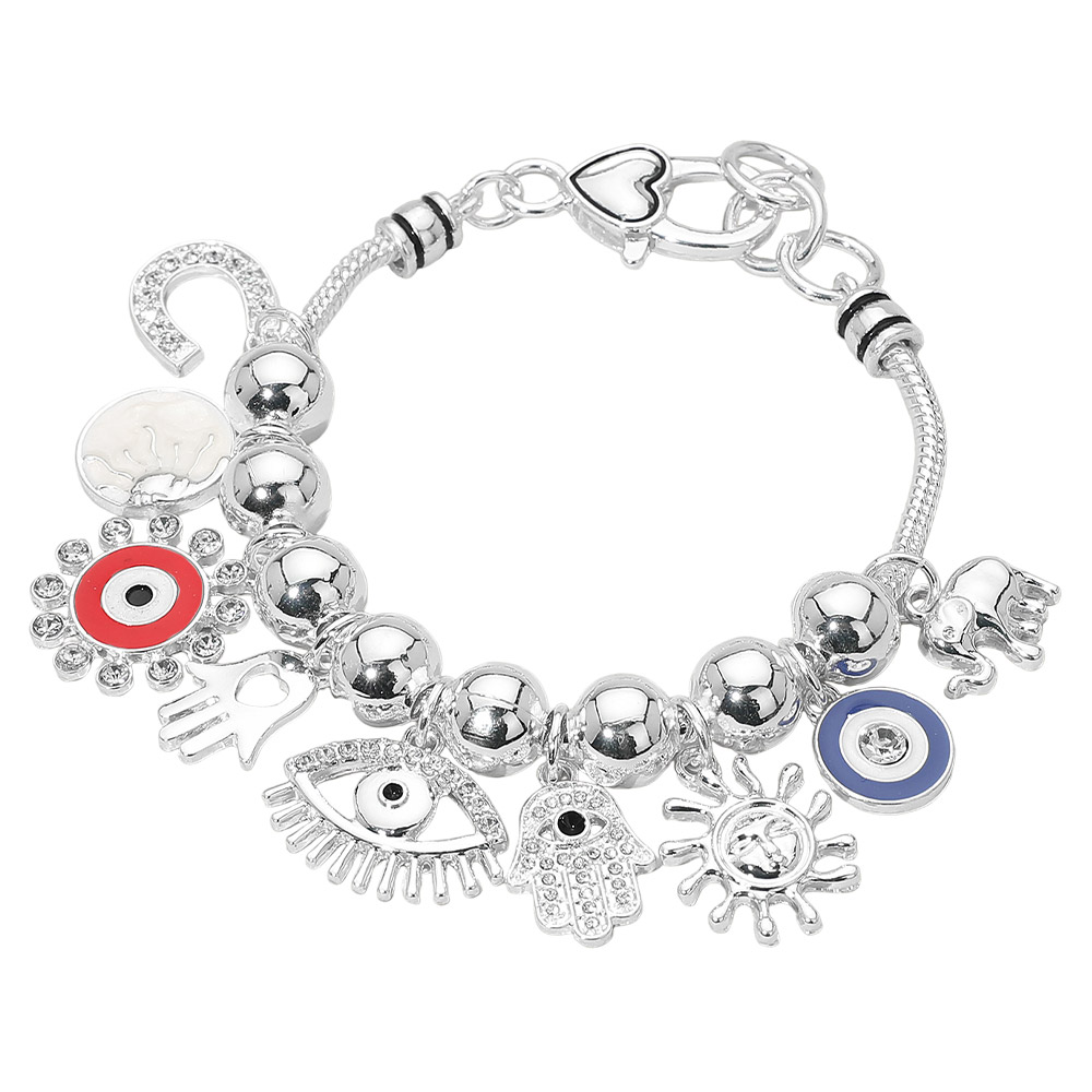 Evil Eye Hamsa Hand Elephant Sun Horseshoe Charm Beaded Bracelet