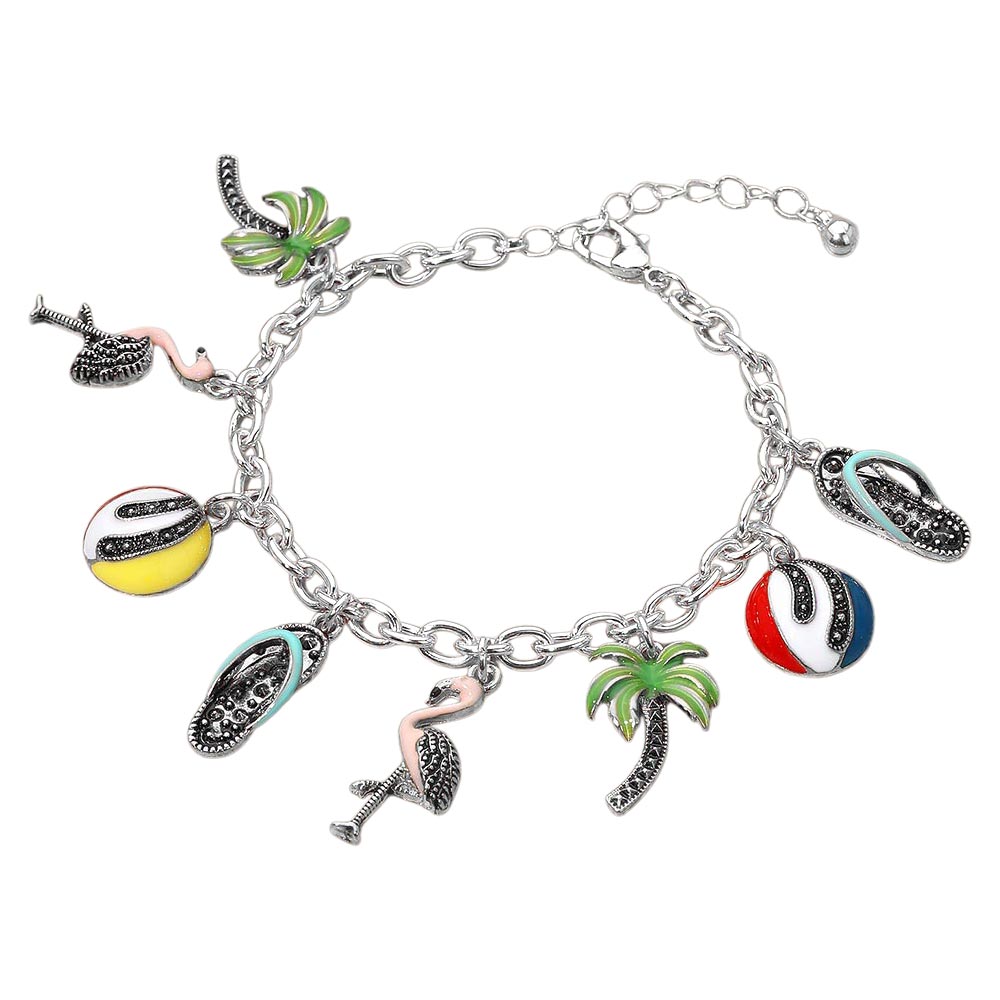 Fun Tropical Palm Tree Flamingo Flip Flop Beach Ball Charm Station Bracelet Fun Tropical Palm Tree Flamingo Flip Flop Beach Ball Charm Station Bracelet