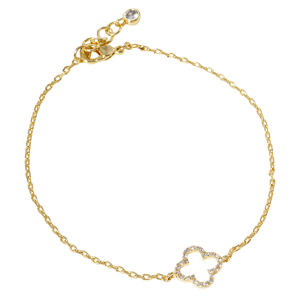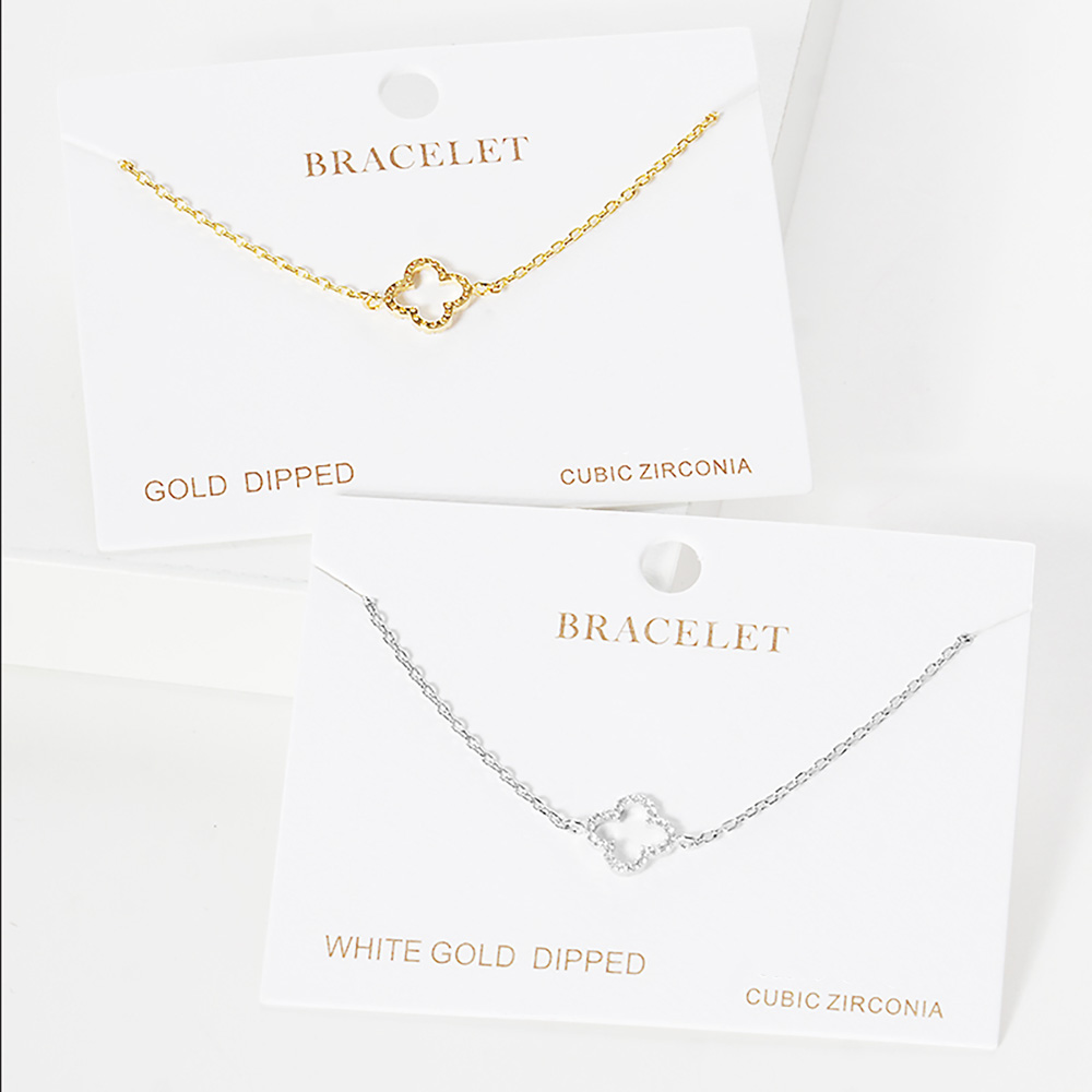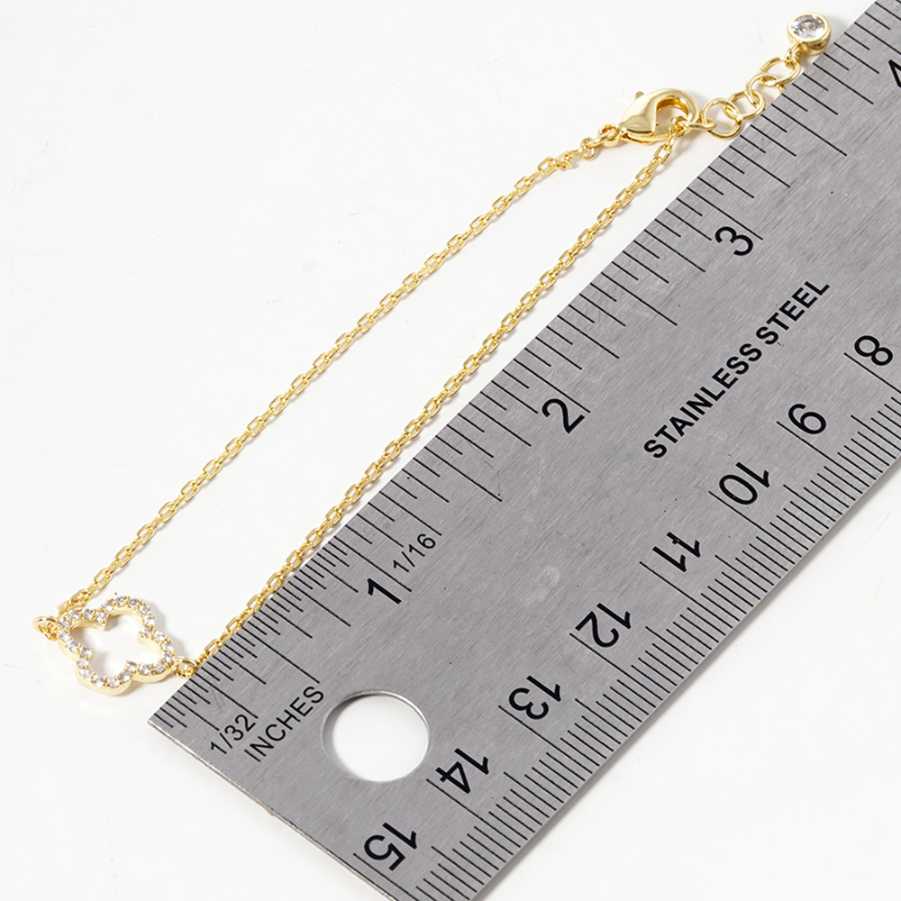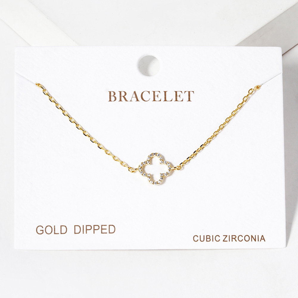 Gold Dipped CZ Quatrefoil Charm Bracelet