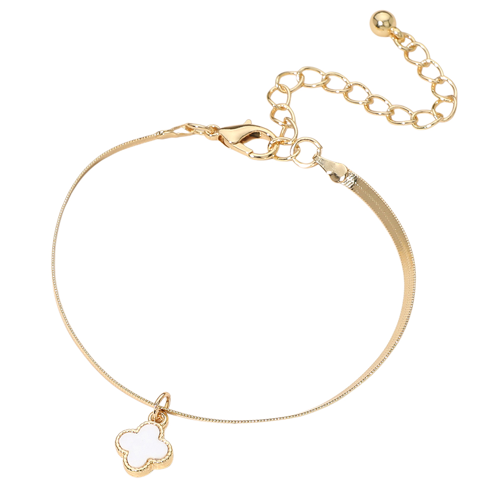 Gold Dipped Quatrefoil Charm Herringbone Chain Bracelet