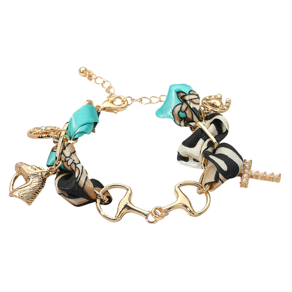Horsebit Link Center Horse Horseshoe Pearl Cross Starburst Charm Station Fabric Bracelet