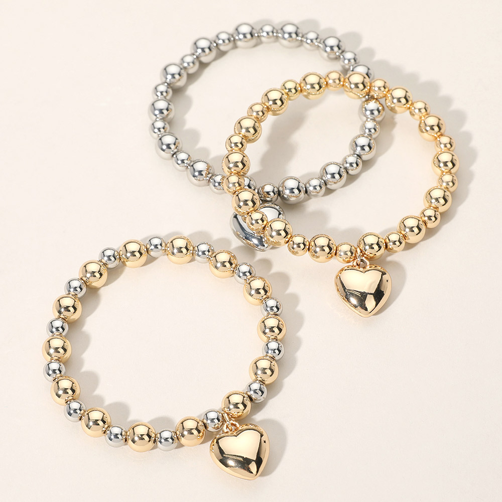 Metal Heart Charm Ball Beaded Stretch Bracelet