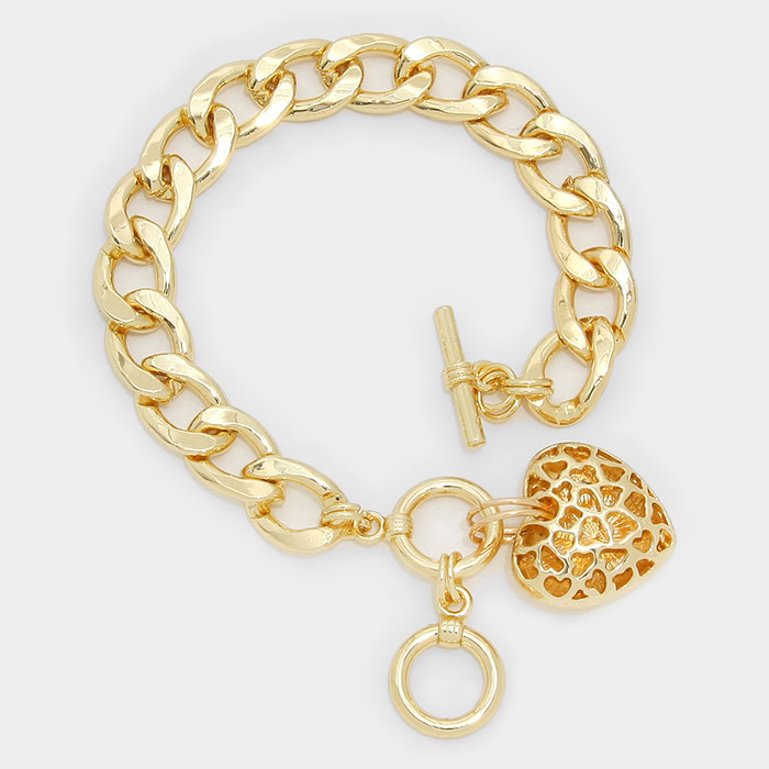 Gold Dipped Double Heart Pendant Bubble Chain Necklace