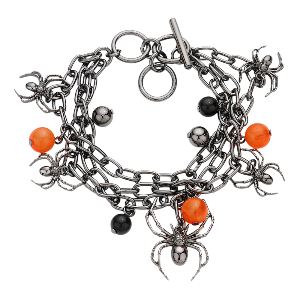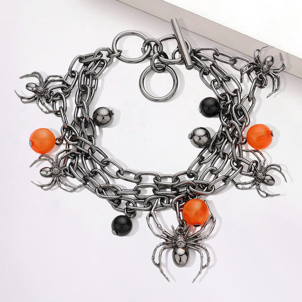 • Bold Halloween chain bracelet adorned with spider charms and festive beads. A spooky yet stylish accessory perfect for costumes, parties, and adding a creepy-cool touch to your seasonal outfit.