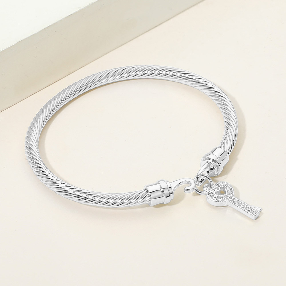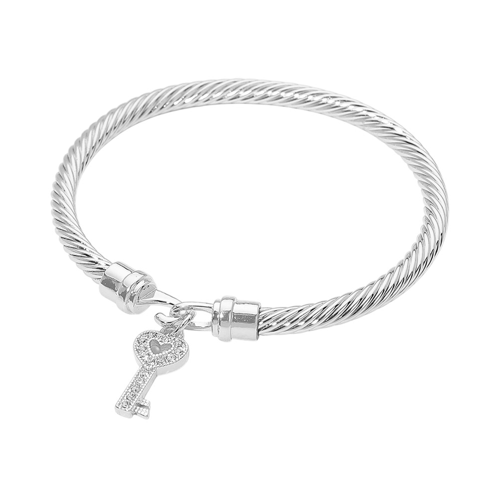 Rhodium Plated CZ Pave Key Charm Cable Bangle Bracelet Rhodium Plated CZ Pave Key Charm Cable Bangle Bracelet Rhodium Plated CZ Pave Key Charm Cable Bangle Bracelet Rhodium Plated CZ Pave Key Charm Cable Bangle Bracelet