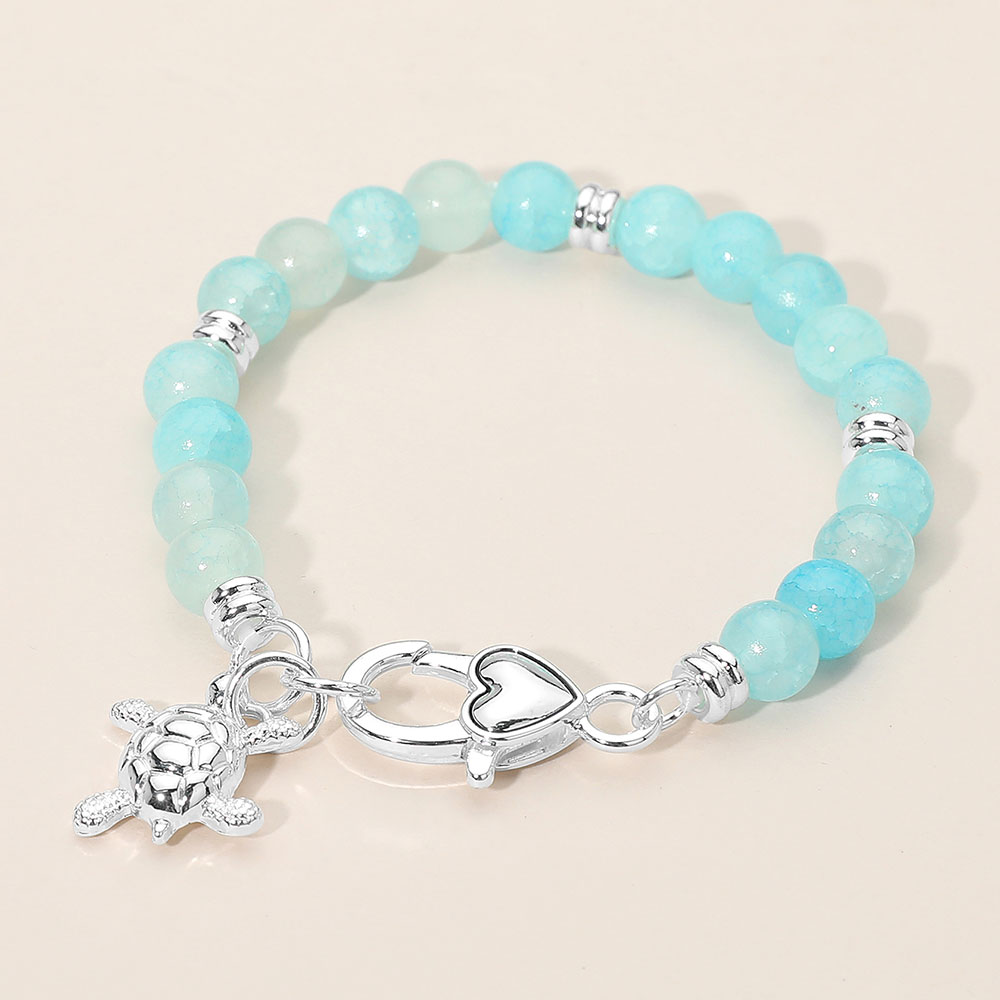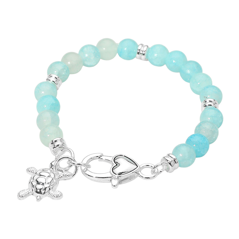 Details • Size : 0.3" H, 7" + 1" L • Charm Size : 0.75" X 0.75" • Lobster Clasp Closure • Charming beaded bracelet featuring a playful sea turtle charm and smooth round beads for a relaxed, coastal-inspired style. Designed for easy wear, gifting, and everyday accessorizing. A fun accessory that adds personality and a touch of nature to casual outfits and seasonal collections. • Lead and Nickel Compliant